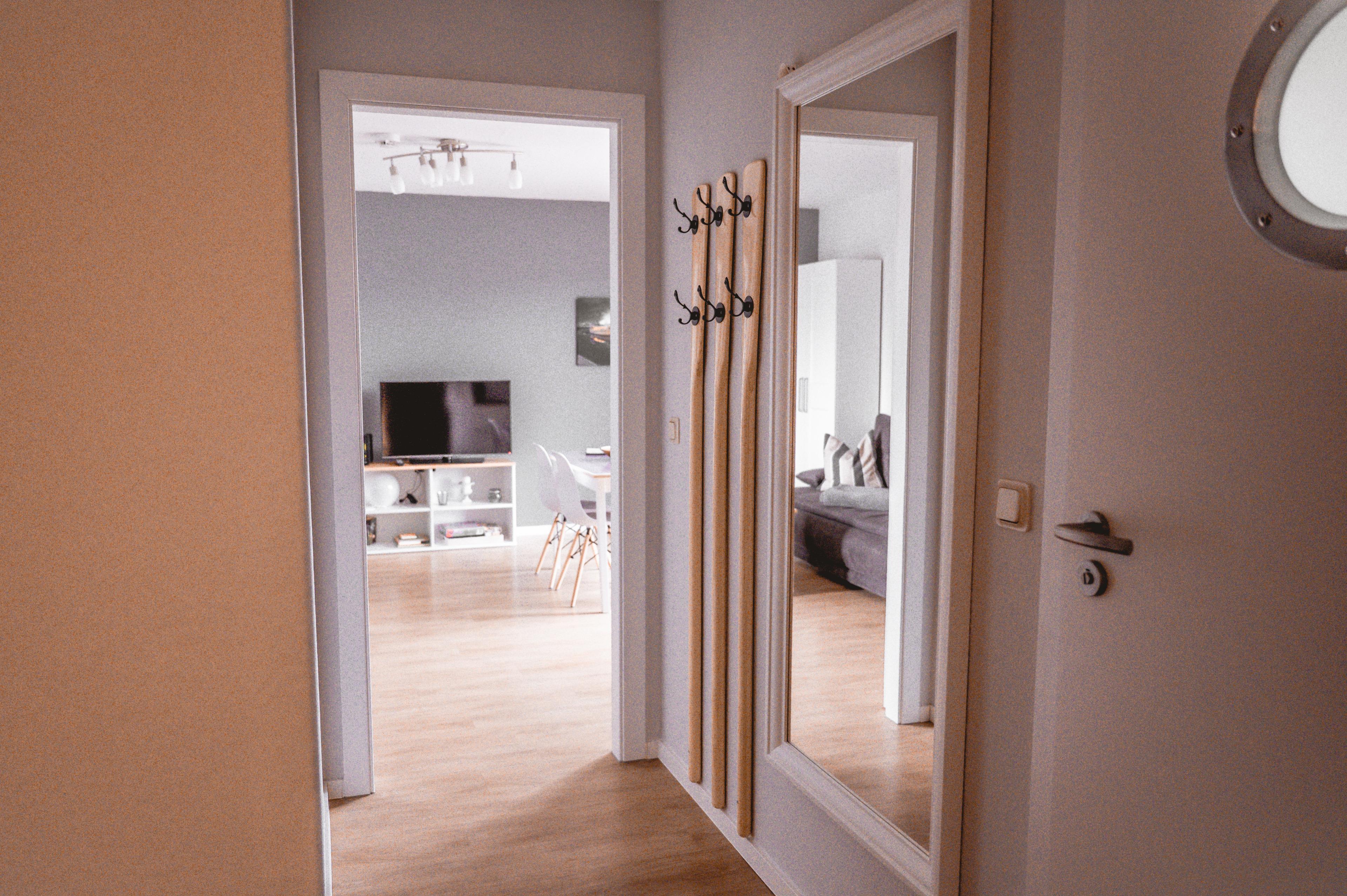 Das lichtdurchflutete Wohnzimmer verfügt über einen Esstisch mit vier Stühlen, ein Schlafsofa mit einem Schlafplatz für zwei Personen und einen Sessel. Ihren Übernachtungsgästen des Wohnzimmers steht hier auch ein Kleiderschrank bereit. Multimedial steht Ihnen hier ein großer Flachbildfernseher zur Verfügung. Ihre Ferienwohnung hat einen Kabelanschluss. Auch einige Gesellschaftsspiele dürfen hier im Bestand nicht fehlen. In Ihrem Schlafzimmer befindet sich ein Doppelbett mit höhenverstellbaren Lattenrosten. Nachtische und Leselampen möchten hier von Ihnen genutzt werden. Der große Schrank und das Kofferboard werden Ihnen gute Dienste leisten und genügend Stauraum für Ihr Gepäck bieten. Die Küche ist zum Wohnzimmer hin offen, was den Raum noch großzügiger erscheinen lässt. Die Küchenzeile ist voll ausgestattet. Bestandteile sind unter anderem ein Cerankochfeld, eine Kaffeemaschine, viel Geschirr, ein Geschirrspüler, eine Backofen-/Mikrowellenkombination sowie eine Kühl- und Gefrierkombination. Kulinarisch sind Ihnen hier also keine Grenzen gesetzt. Ihr großes Badezimmer ist mit einer extrahohen Duschkabine und ausreichend Ablageflächen ausgestattet. Auch ein Fön wartet hier schon auf Sie. Ihr Flur beherbergt eine Garderobe und einen großen Spiegel für Sie. Das Appartement Dione liegt im ersten Obergeschoss des Hauses Wikinger im Eingang 4. In unmittelbarer Nähe dieses Appartements befinden sich weitere Ferienappartements unserer Gesellschaft. Eine gemeinsame Anmietung ist hier sehr gut möglich.