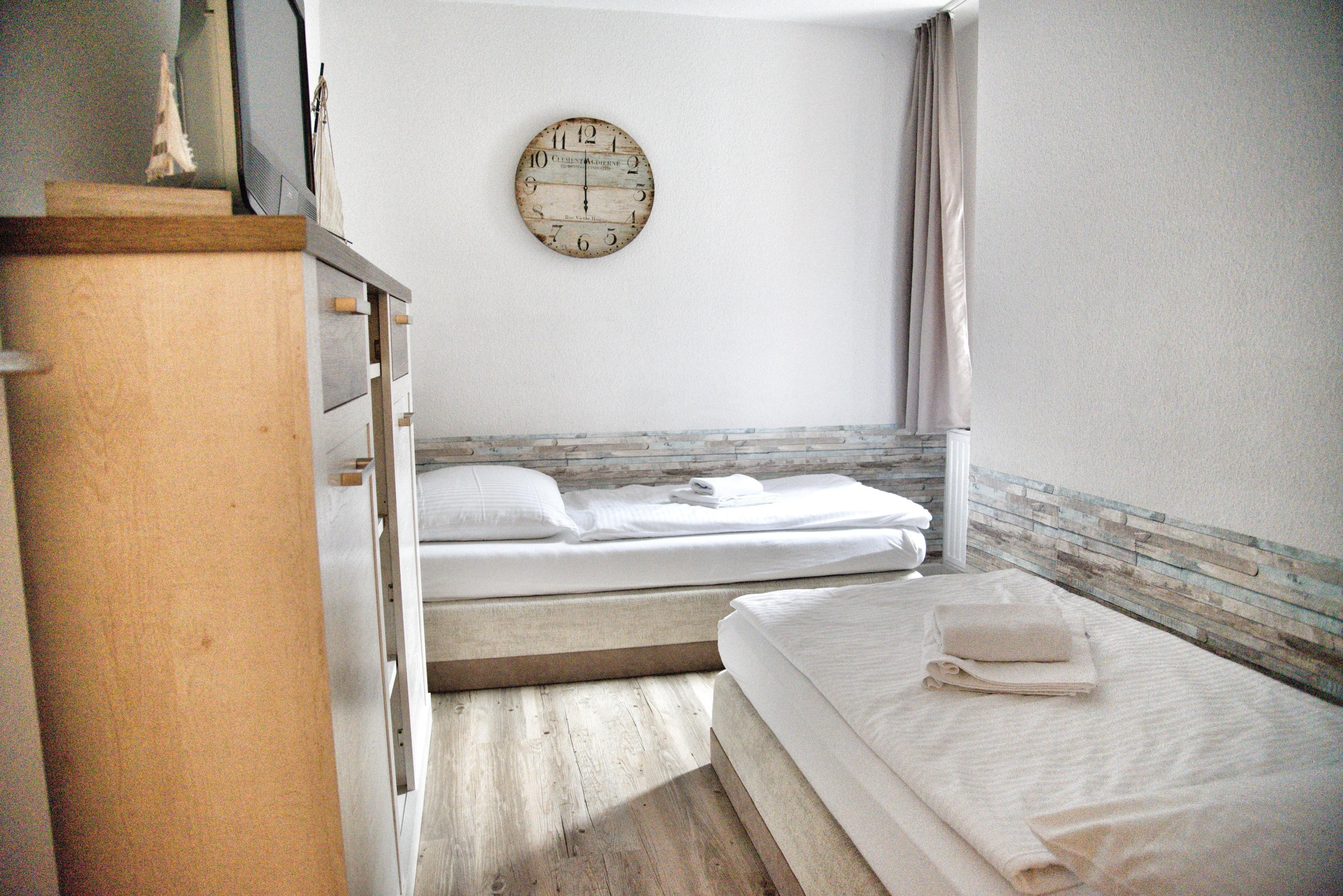 In Ihrem großen Schlafzimmer befindet sich ein Doppelbett. Nachtische, Leselampen und Garderoben möchten hier von Ihnen genutzt werden. Die großen Kleiderschränke werden Ihnen gute Dienste leisten. Im kleineren Schlafzimmer finden Sie zwei Einzelbetten vor. Ablageflächen, ein weiterer Fernseher und eine X-Box sind hier auch vorhanden.