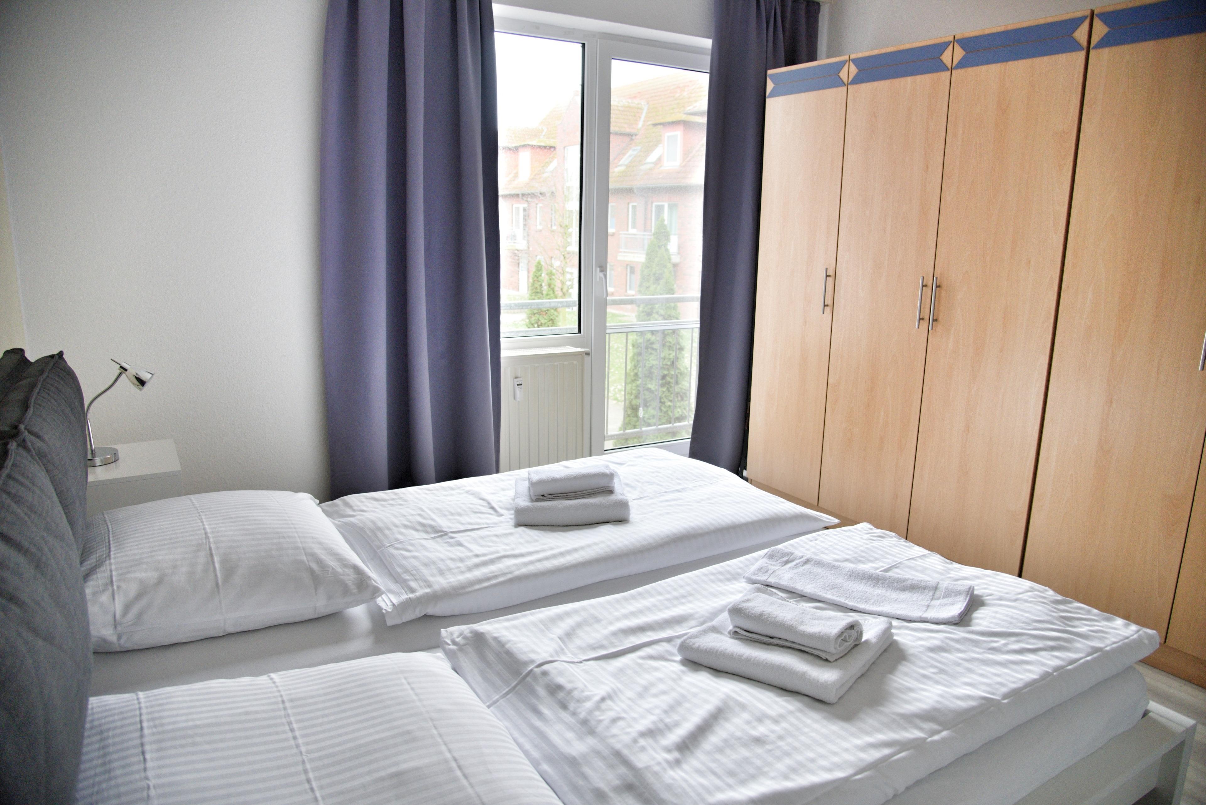 Nachtische, Leselampen und Garderoben möchten hier von Ihnen genutzt werden. Die großen Kleiderschränke werden Ihnen gute Dienste leisten. Im kleineren Schlafzimmer finden Sie zwei Einzelbetten vor. Ablageflächen sind auch hier selbstverständlich vorhanden. Die Küche verfügt über eine komplett ausgestattete Küchenzeile, mit Herd, Backofen, Mikrowelle, viel Geschirr, einen Geschirrspüler sowie einer großen Kühl- Gefrierkombination. Hier können Sie sich kulinarisch voll entfalten. Das neue Badezimmer hat eine Dusche, ein Bidet, einen Fön und ausreichend Ablageflächen für Ihre Kosmetika. Eine Garderobe ziert Ihren Eingangsbereich im Flur.