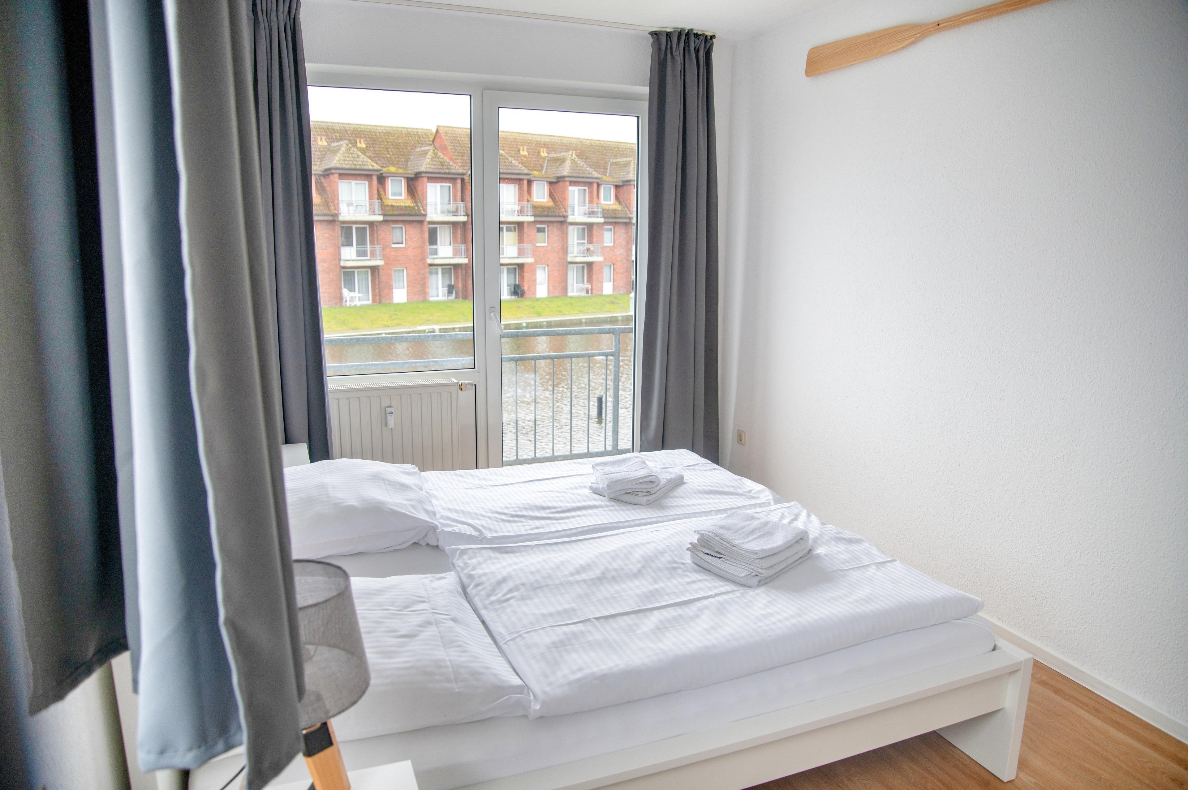Bei der Ferienwohnung Deck handelt es sich um eine hochwertig eingerichtete, maritim geprägte Nichtraucherwohnung, die sich über eine Fläche von 61 Quadratmetern erstreckt. Aus jedem Fenster und auch von den beiden südlich ausgerichteten Balkonen aus blicken Sie direkt auf die Hafenanlagen der Marina. Auf den beiden Balkonen stehen Ihnen Gartenstühle, ein Tisch und ein Sonnenschirm zur Verfügung. In den beiden Schlafzimmern und auch im Wohnzimmer sind die Fenster bodentief.