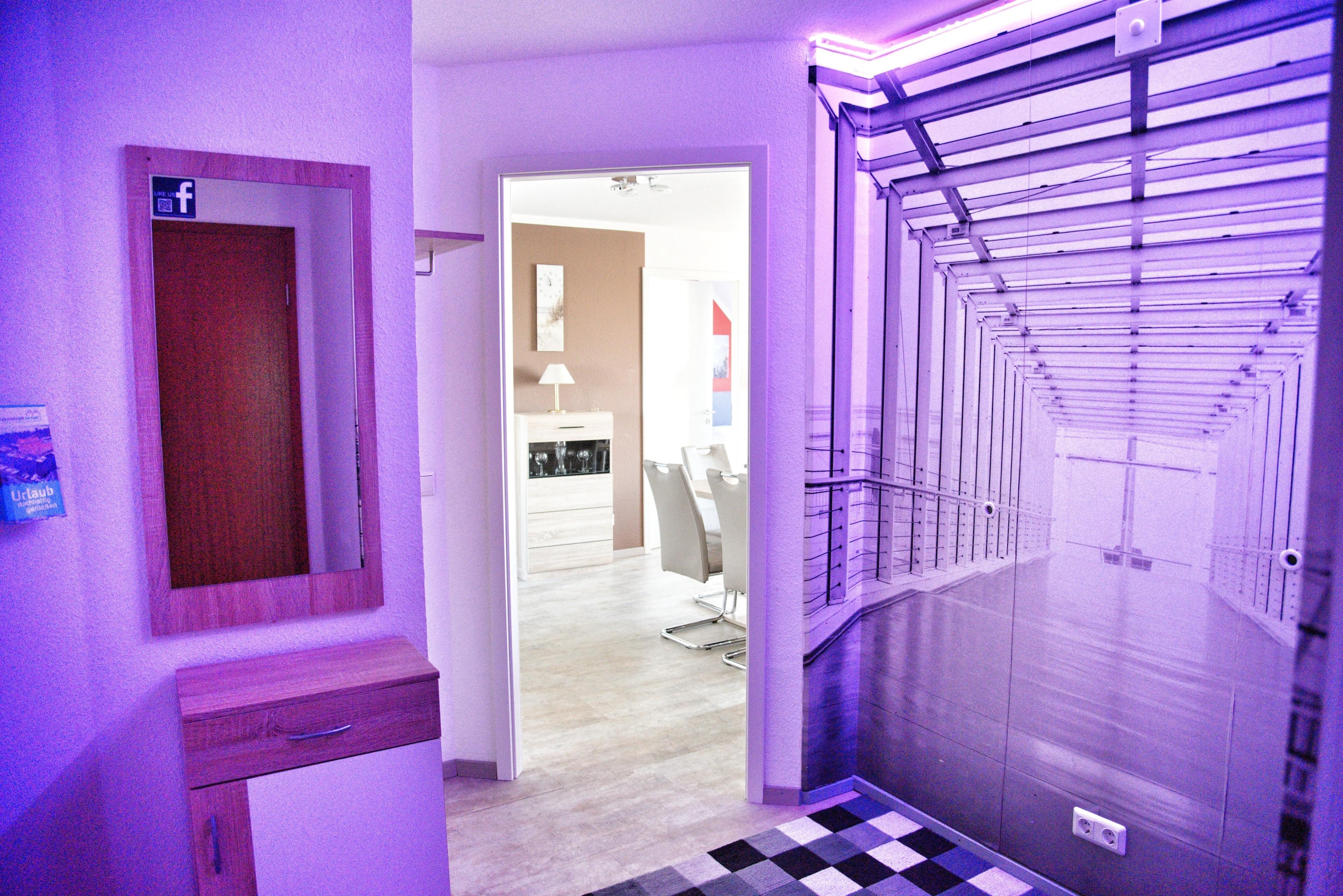 Ihre hochwertige Einbauküche ist für Sie voll ausgestattet. Bestandteile sind unter anderem ein Cerankochfeld, ein Backofen, eine Kaffeemaschine, eine Mikrowelle, viel Geschirr, ein Geschirrspüler, eine große Kühl- und Gefrierkombination und weiteres Equipment. Das Badezimmer hält eine Dusche mit Duschkabine, Ablageflächen und einen Fön für Sie bereit. Im Flur finden Sie eine Garderobe, einen großen Spiegel und Reinigungsgeräte vor.