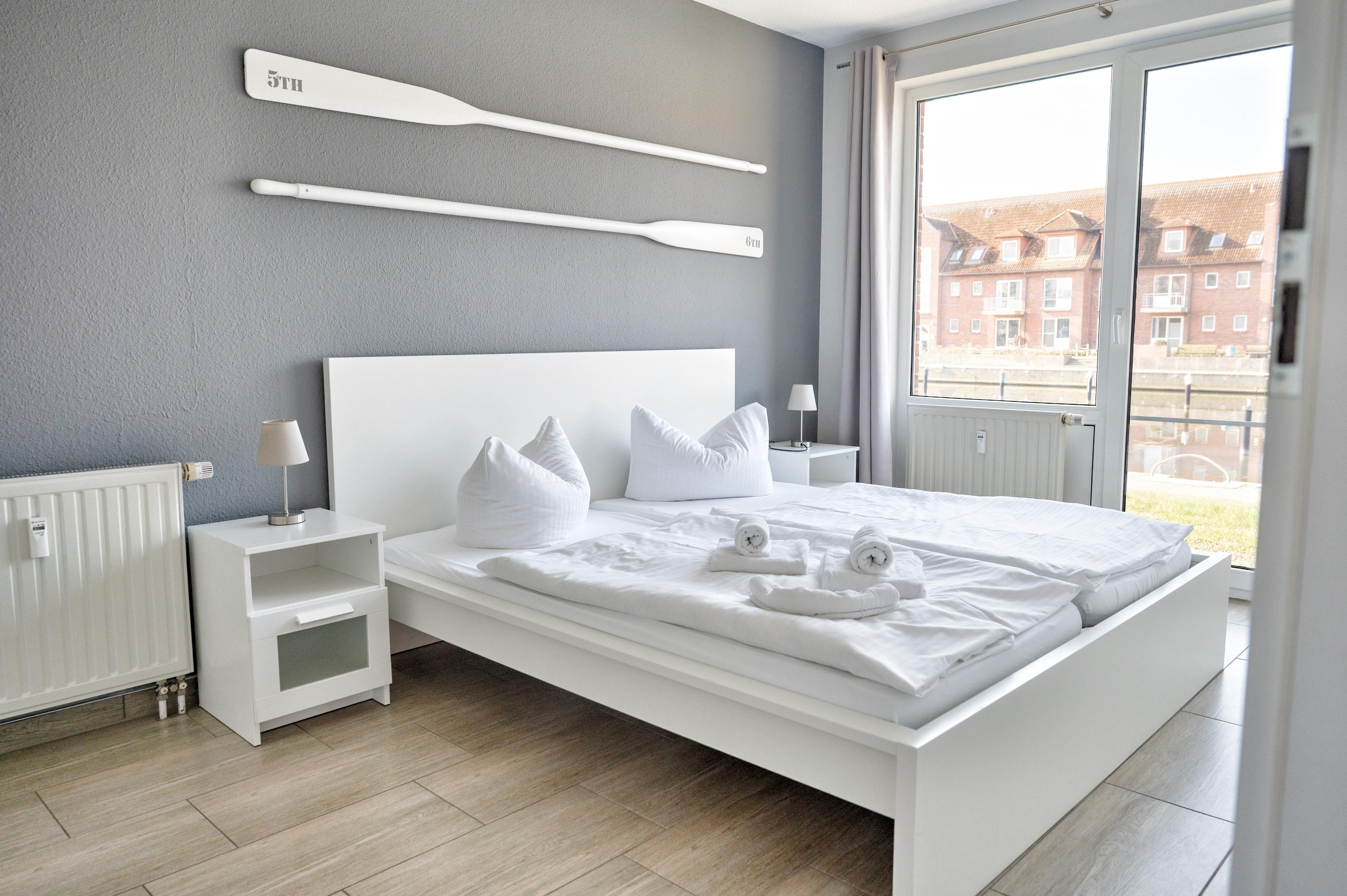 Bei der Ferienwohnung Liek handelt es sich um eine hochwertig eingerichtete, maritim geprägte Nichtraucherwohnung, die sich auf 61 Quadratmeter erstreckt. Auf den beiden Terrassen, welche gen Süden ausgerichtet sind, stehen Ihnen Gartenstühle, ein Tisch und ein Sonnenschirm zur Verfügung. Aus jedem Fenster dieser Ferienwohnung und auch von den Terrassen aus blicken Sie direkt auf die Hafenanlagen der Marina. In den beiden Schlafzimmern und auch im Wohnzimmer sind die Fenster bodentief. So können Sie vom Bett aus die Boote im Hafenbecken fahren sehen. Der maritime Ausblick ist sicher gestellt.