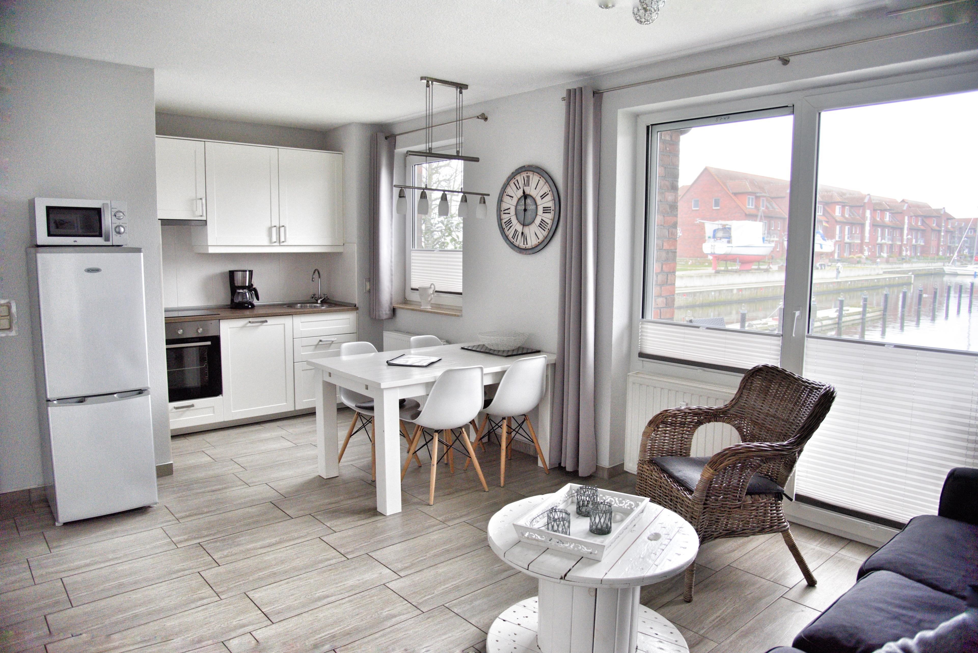 Moderne Ferienwohnung mit Hafenblick und Terrasse in Ueckermünde für erholsamen Urlaub.
