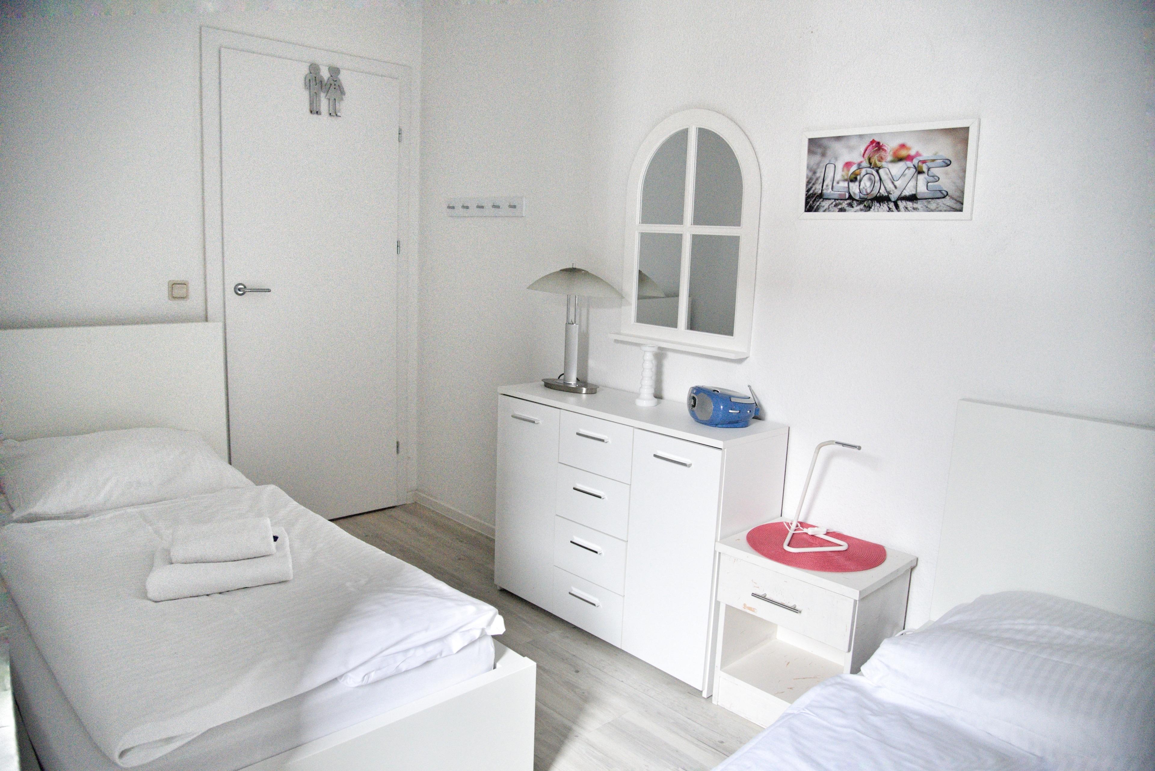 Nachtische, Leselampen und Garderoben möchten hier von Ihnen genutzt werden. Die großen Kleiderschränke werden Ihnen gute Dienste leisten. Im kleineren Schlafzimmer finden Sie zwei Einzelbetten vor. Ablageflächen sind auch hier selbstverständlich vorhanden. Die Küche verfügt über eine komplett ausgestattete Küchenzeile, mit Herd, Backofen, Mikrowelle, viel Geschirr, einen Geschirrspüler sowie einer großen Kühl- Gefrierkombination. Hier können Sie sich kulinarisch voll entfalten. Das neue Badezimmer hat eine Dusche, ein Bidet, einen Fön und ausreichend Ablageflächen für Ihre Kosmetika. Eine Garderobe ziert Ihren Eingangsbereich im Flur.