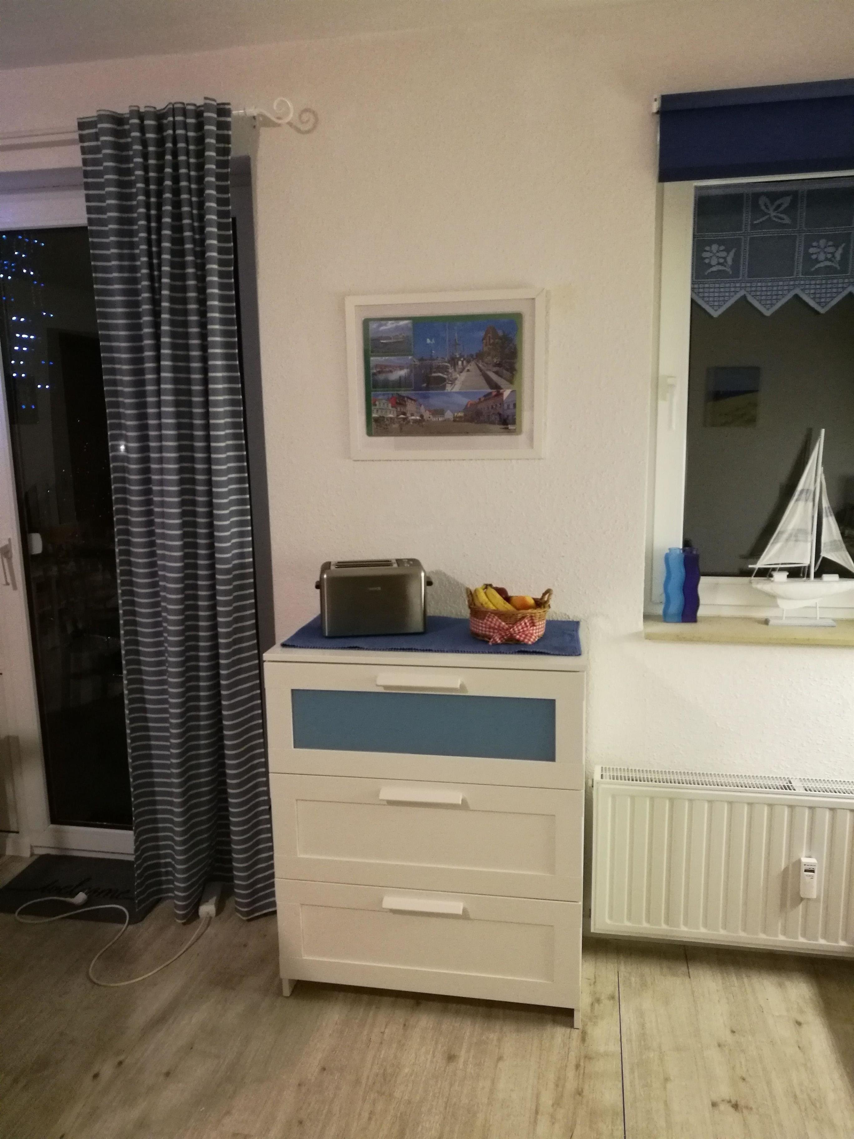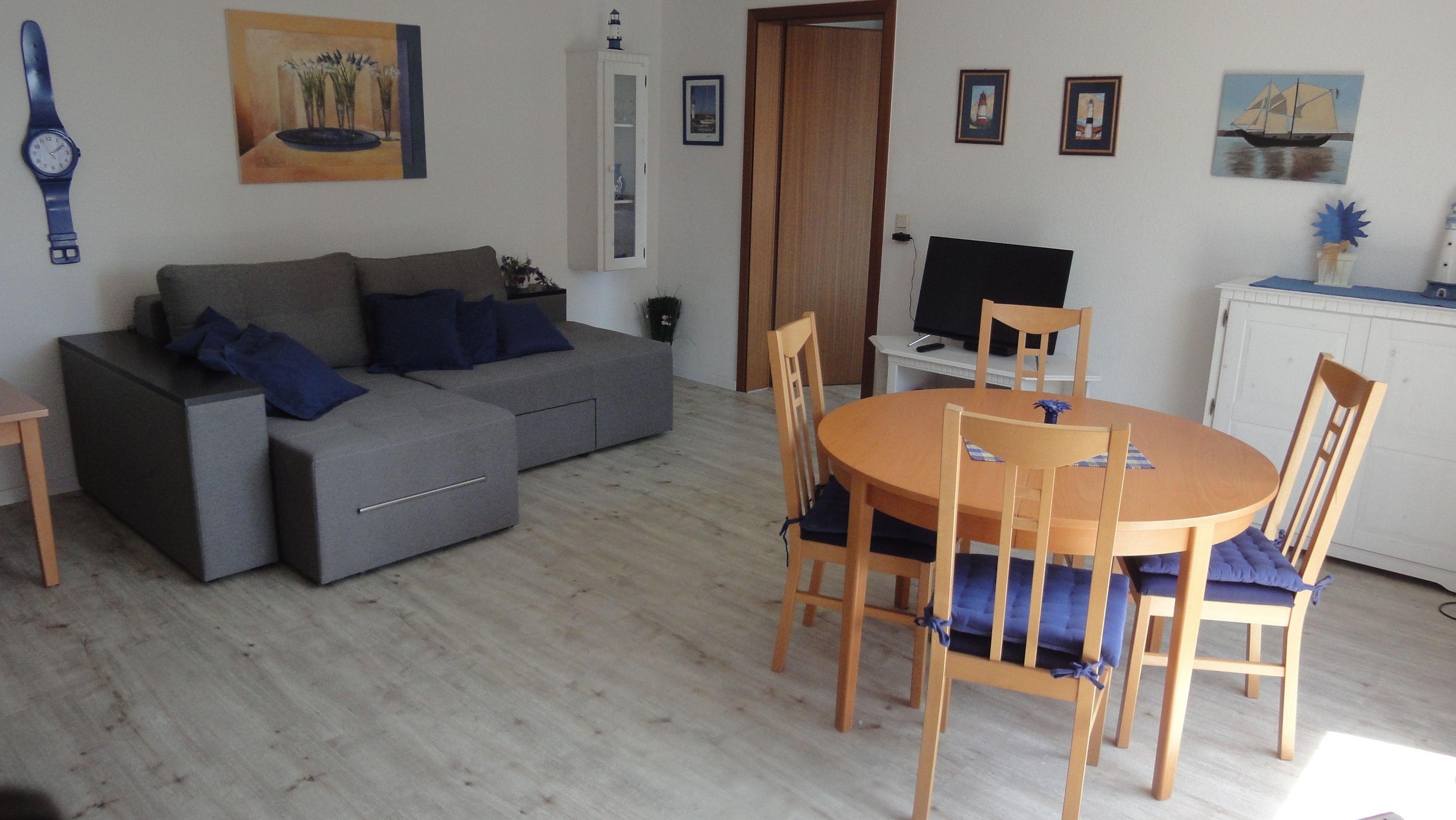 Die FEWO ist hell und modern ausgestattet, verfügt über ein Schlafzimmer mit Doppelbett 1,80 x 2 m und großem Kleiderschrank.