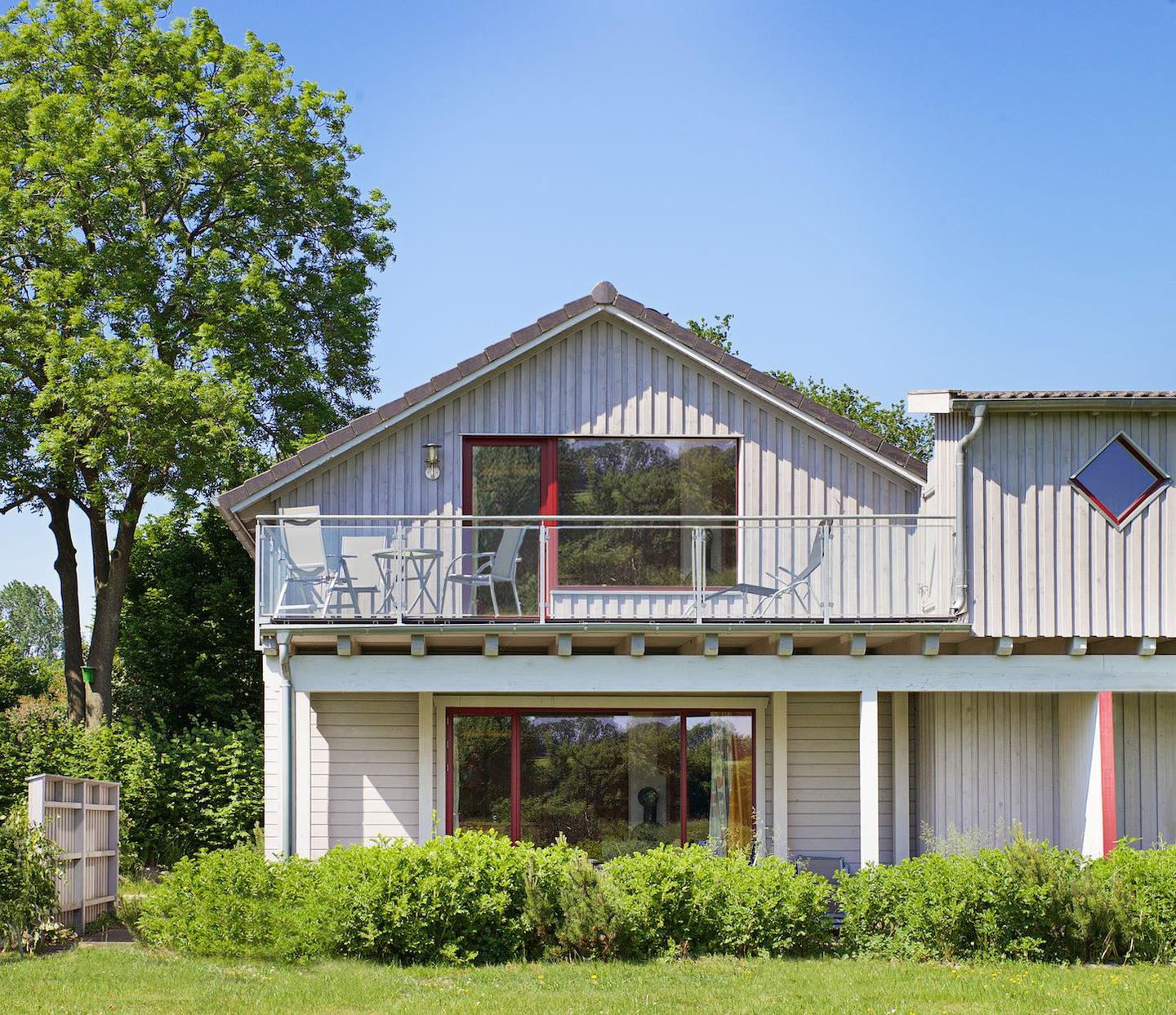 Gemütliche helle Blockhauswohnung mit Panoramablick und großem Südbalkon in Ulsnis am Ostseefjord Schlei.