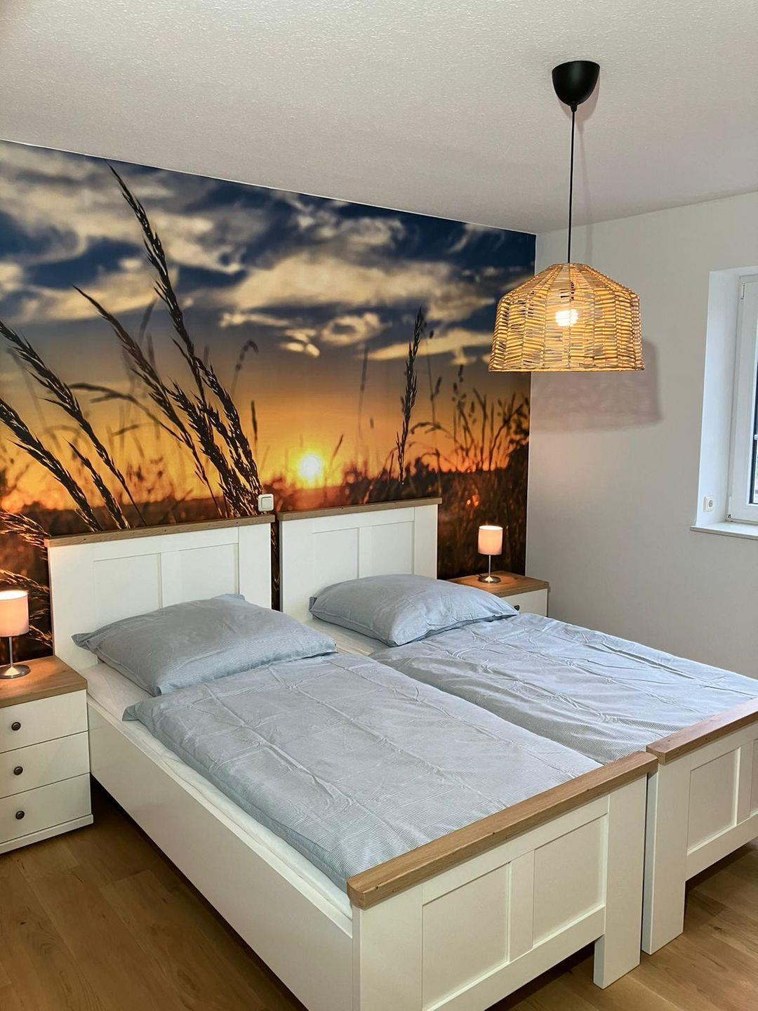 Die Unterkunft umfasst 4 Zimmer, darunter 3 Schlafzimmer. Zwei der Schlafzimmer verfügen über ein komfortables Doppelbett (180x200cm) und getrennten Matratzen, das andere Schlafzimmer über zwei Einzelbetten (90x200cm) Zusätzlich steht Ihnen in den Schlafzimmer ein Kleiderschrank und Verdunklungsmöglichkeit zur Verfügung. Das Badezimmer verfügt über eine ebenerdige Dusche, WC, Haartrockner, Spiegel und Waschbecken.