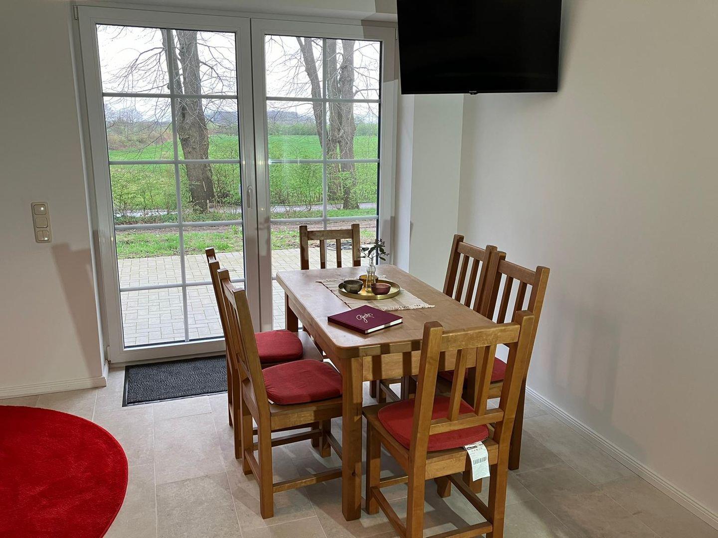 Neu erbaute Doppelhaushälfte Landperle 2 in Ulsnis mit Garten, Kamin und moderner Ausstattung für erholsamen Urlaub.