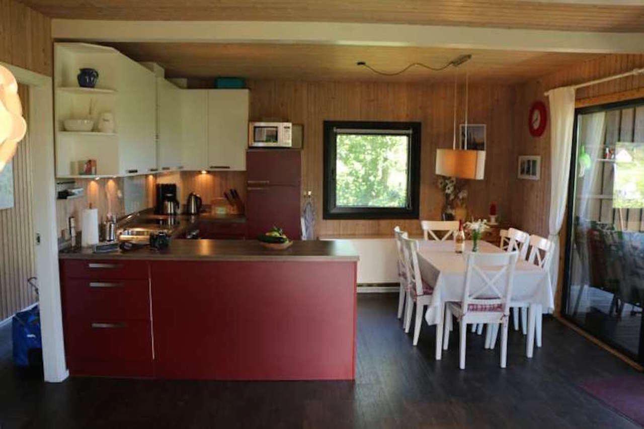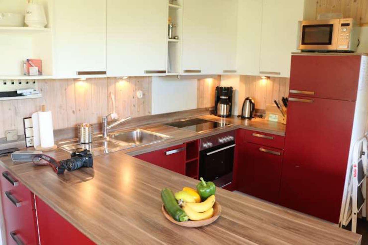 Der Wohnbereich mit seiner großzügigen Sitzgarnitur, dem urigen Bollerofen und dem 40 Zoll Flachbildfernseher lädt zu gemütlichen Stunden ein. Die offene, moderne Küche und der angeschlossene Essbereich bieten Ihnen genügend Platz und die Möglichkeit gemeinsamen zu Kochen und zu Genießen. Neben zwei Badezimmern verfügt das Haus über 3 liebevoll eingerichtete Schlafbereiche. Wäschepakete (Bettbezüge + Handtücher) sind optional gegen Gebühr dazu buchbar.
