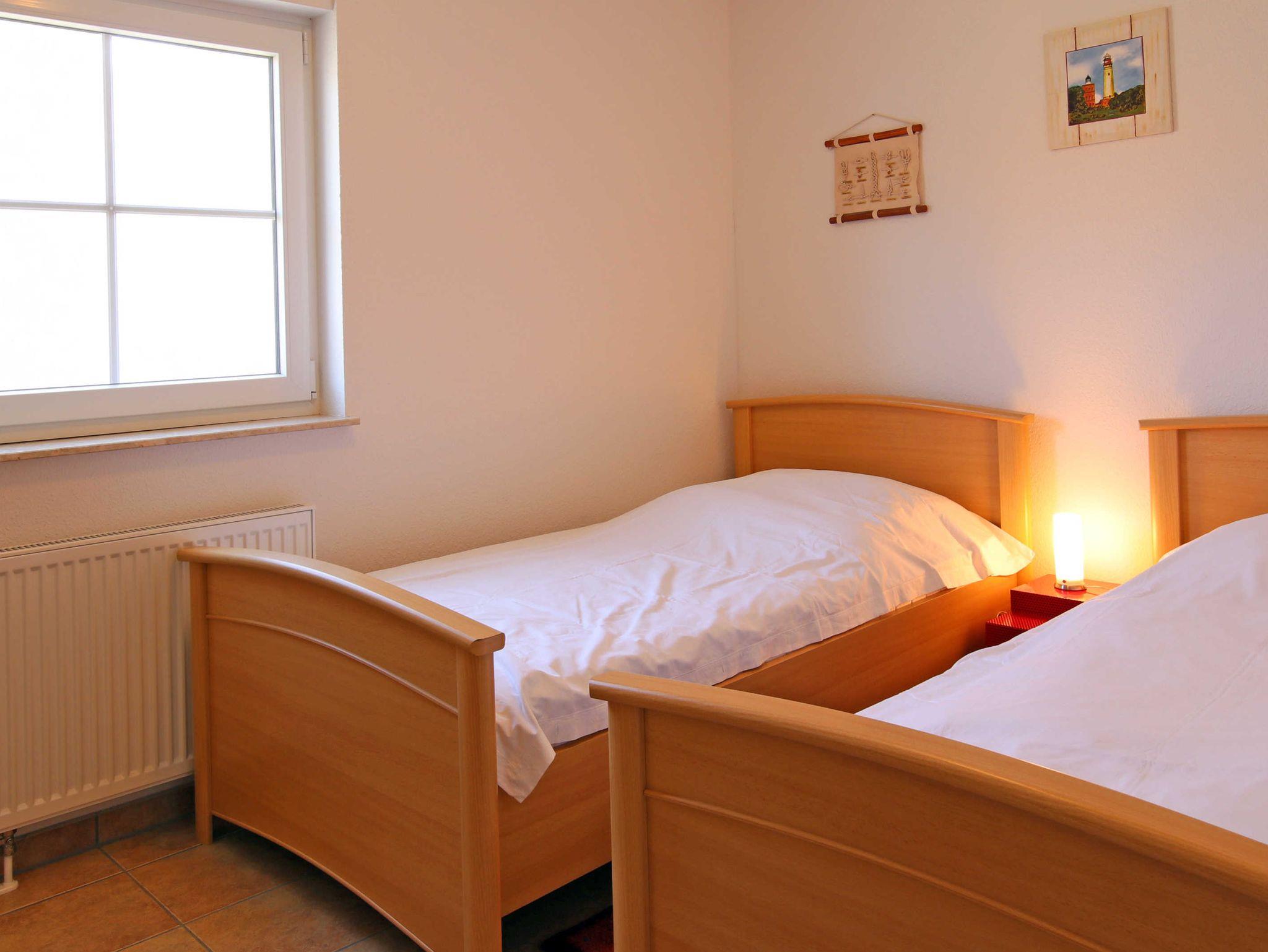 Das Ferienhaus teil sich in Wohnzimmer, drei Schlafzimmer, eine separate Küche und ein Badezimmer ein. Das Wohnzimmer verfügt über Couch, TV und einen Esstisch. Zwei Schlafzimmer sind mit jeweils einem Doppelbett (200x200, getrennte Matratzen) ausgestattet, während das dritte Schlafzimmer über 2 Einzelbetten (100x200 höhere Seniorenbetten) verfügt (Hinweis: die Bettdecken haben Komfortgröße mit 1,55m x 2,20m). In einem Schlafzimmer mit Doppelbett befindet sich zusätzlich ein feststehendes Kinderbett (70x140). In der vollausgestatteten Küche befinden sich neben dem Elektro-Herd mit Backofen, Kühlschrank, Geschirrspüler, Kaffeemaschine, Wasserkocher, Toaster, Mikrowelle und auch Sitzgelegenheiten. Das Bad ist mit einer Badewanne, Dusche, einem WC und Föhn ausgestattet.