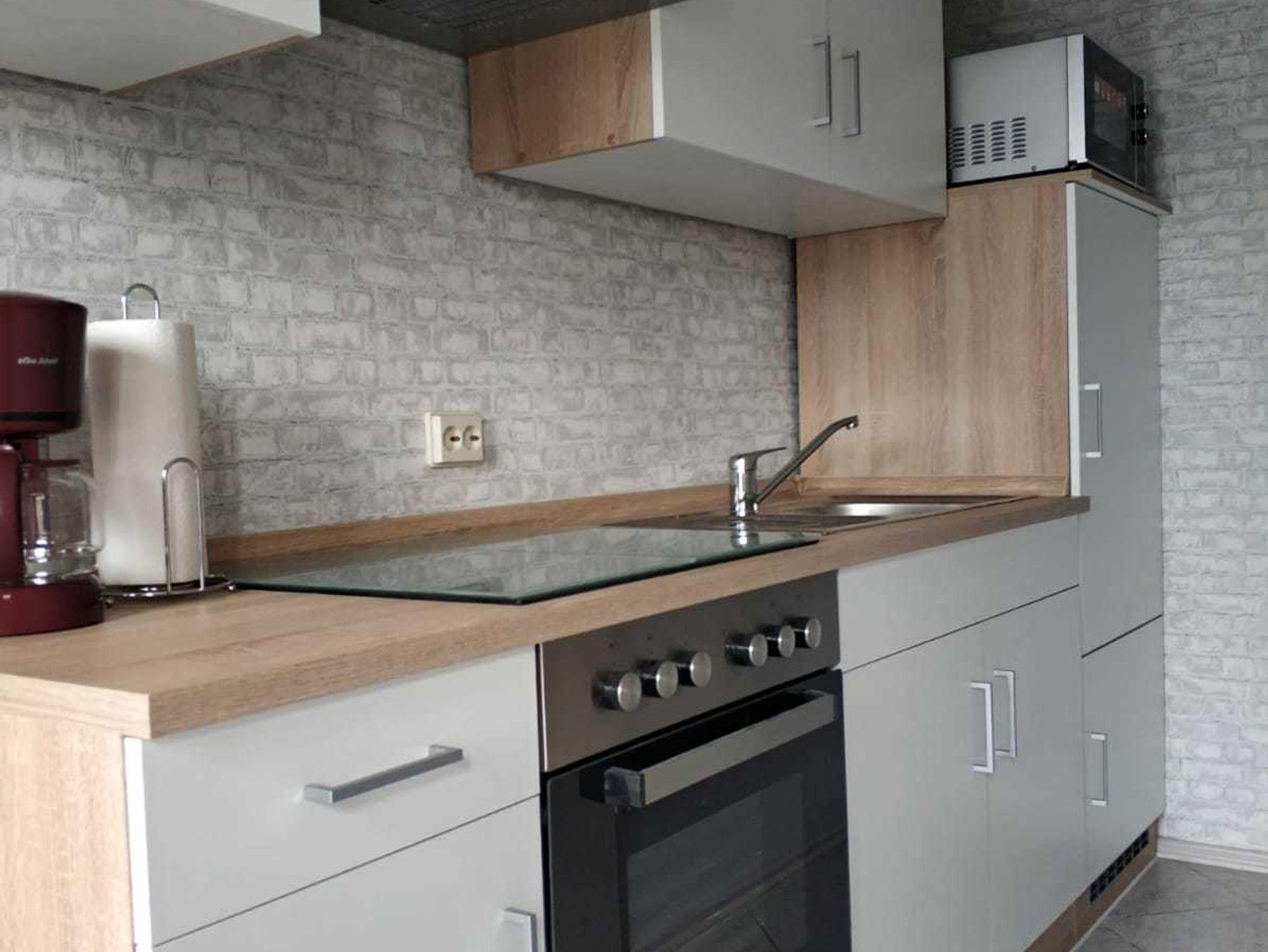 Die Küche ist komplett ausgestattet. (Kaffeemaschine, Wasserkocher, Toaster, Herd & Backofen, Mikrowelle)
