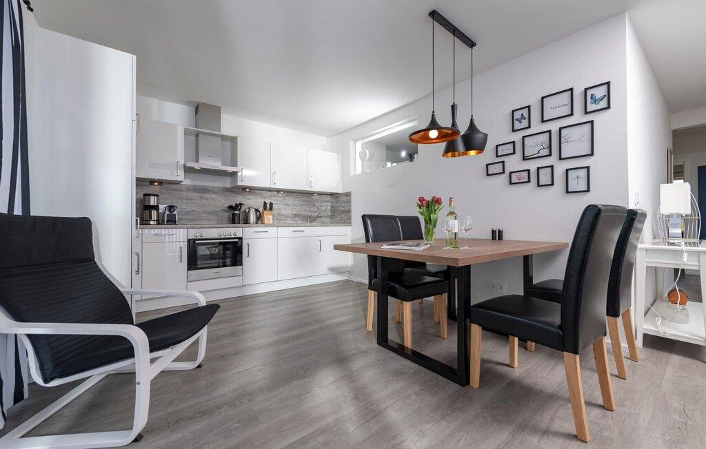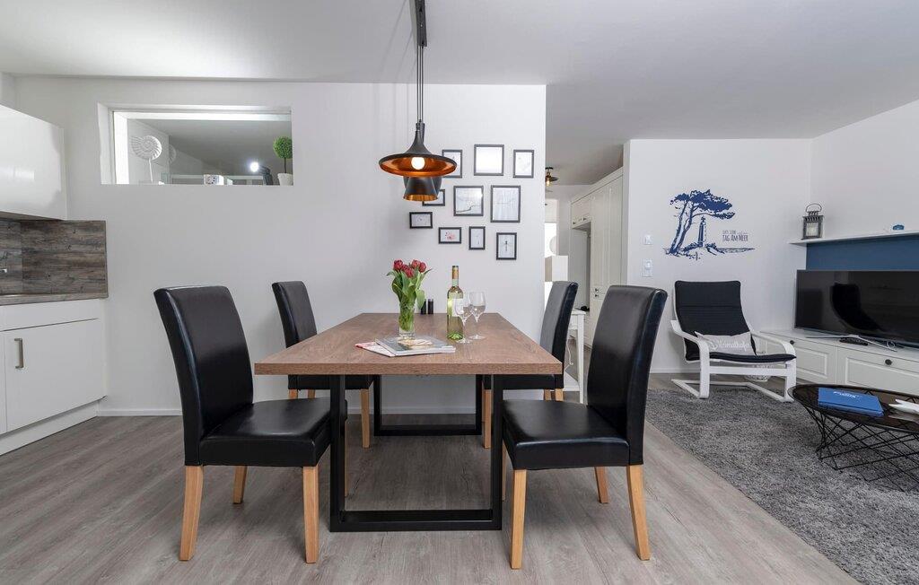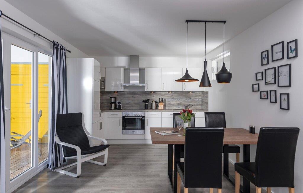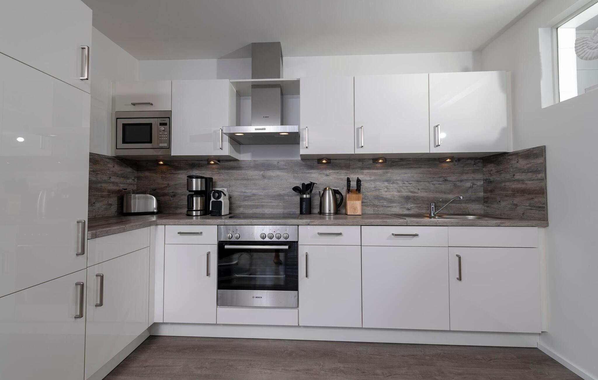 Im Urlaub ist Zeit für kreatives Kochen, die rundum ausgestattete Wohnküche lässt hierbei keine Wünsche offen. Frühstücken bei Morgensonne auf der Ostterrasse, Urlaubsfeeling pur.