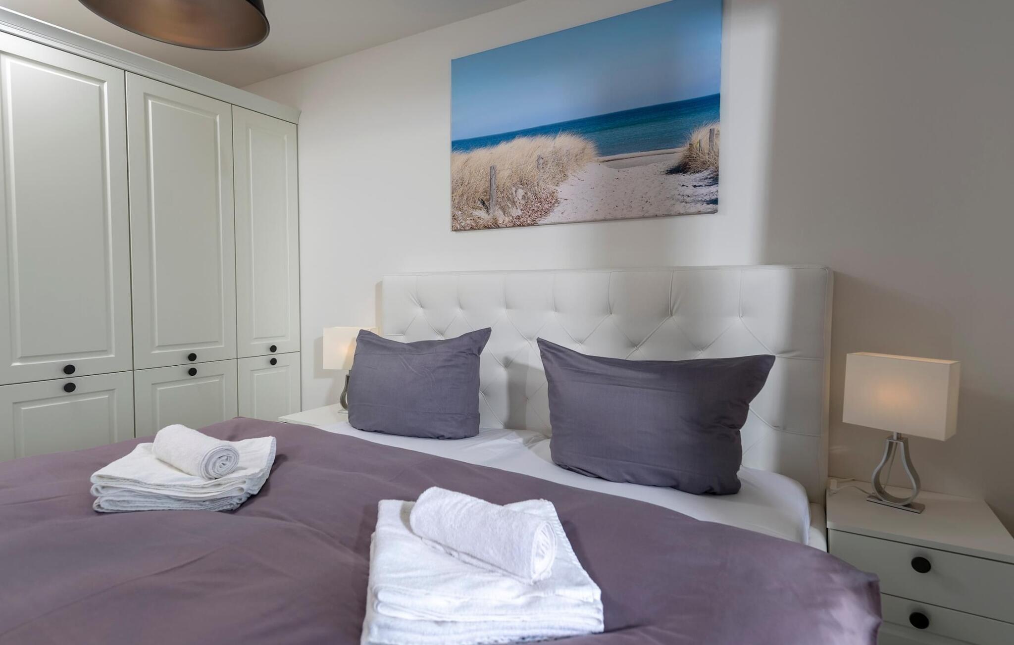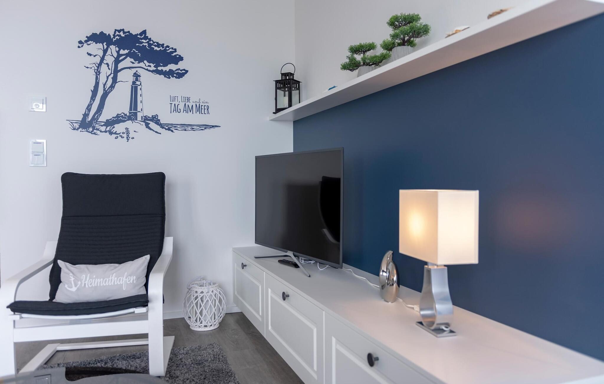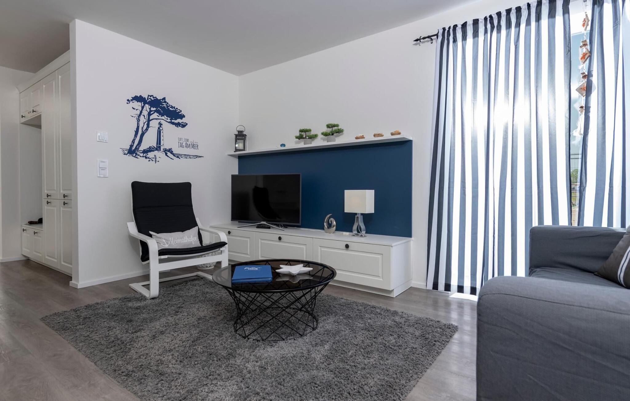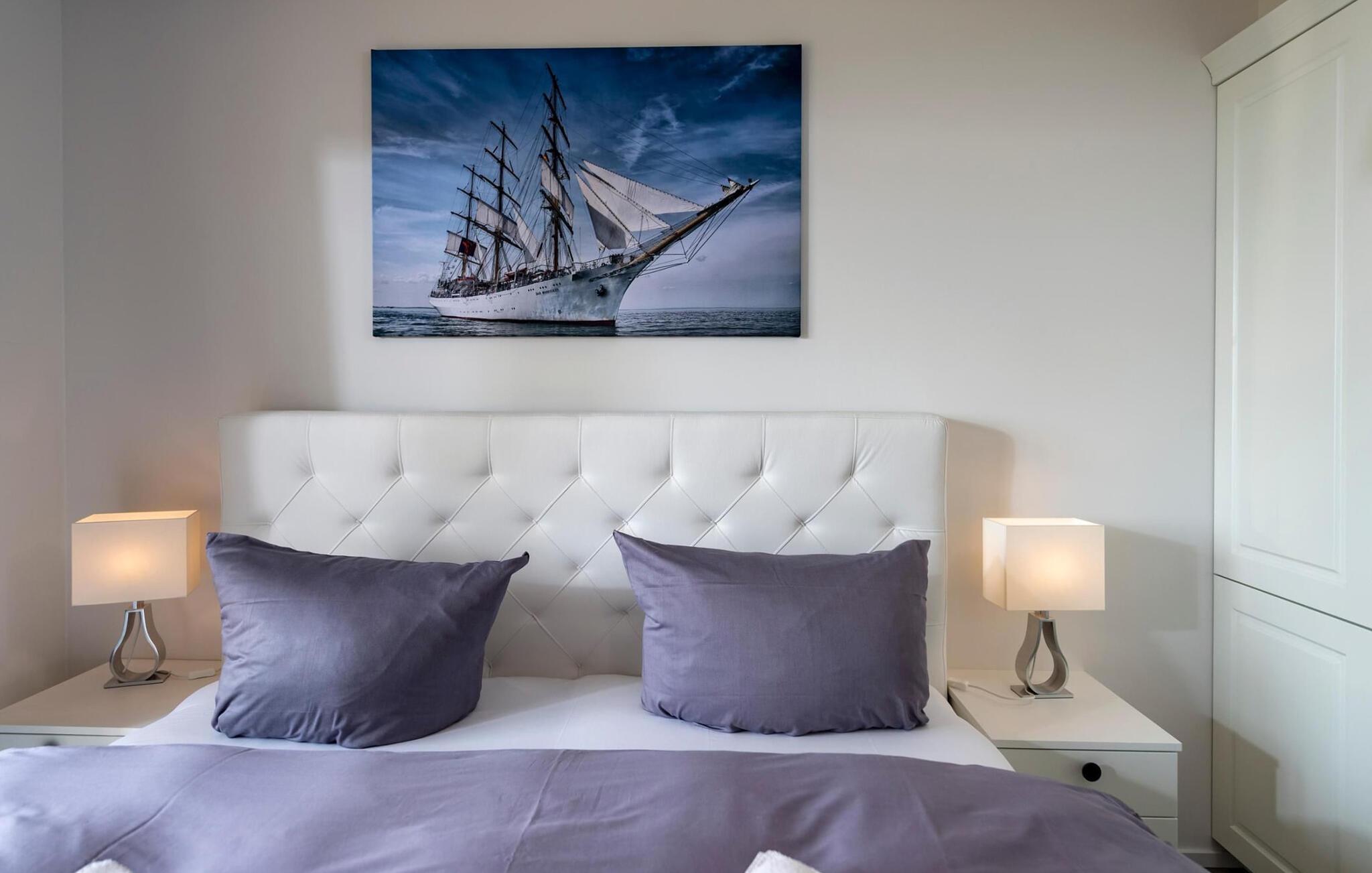 Dieses Ferienapartment in Olpenitz bietet traumhaften Meerblick, Wellness mit Sauna und Whirlpool sowie eine moderne maritime Einrichtung.