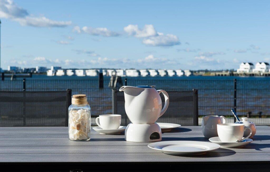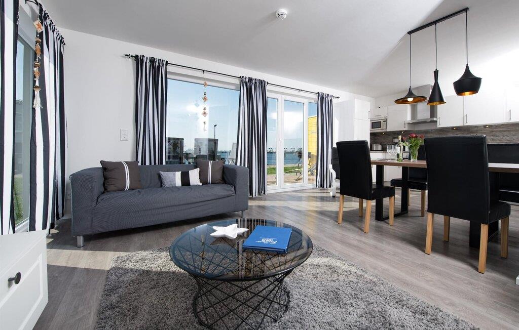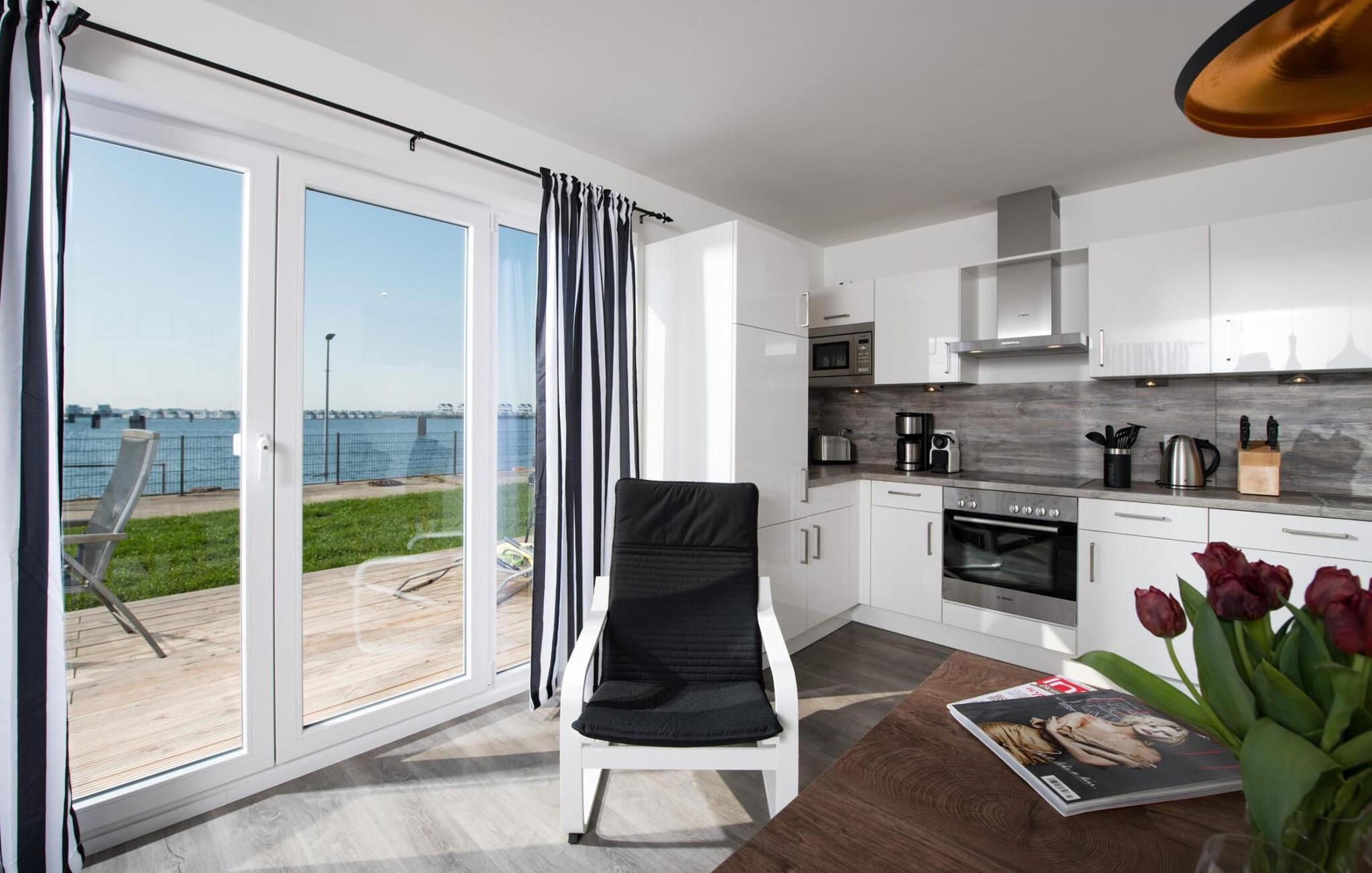 Traumhafte Aussichten eröffnen sich aus dem Wohnbereich und auf der angrenzenden Terrasse mit Blick über die Marina. Hafenkino sorgt hier für Unterhaltung während eines geselligen Grillabends oder romantischen Candle-Light-Dinners bei Sonnenuntergang.