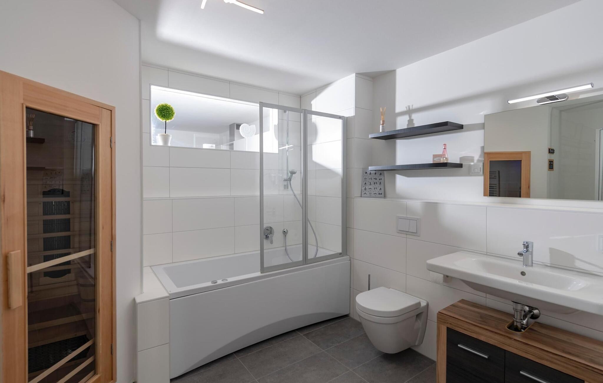 Fußbodenheizung, Whirlpool-Badewanne und Sauna versprechen Komfort zu jeder Jahreszeit.