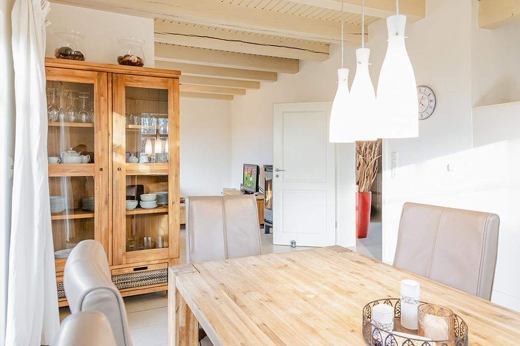 Haus: Schönes Ferienhaus mit Sauna und Kaminofen. Nichtraucherhaus. Gehobene Ausstattung mit moderner, geschmackvoller Einrichtung. 3 Schlafzimmer, 2 Bäder. Kostenloser Internetzugang (W-Lan). Zentralheizung. Waschmaschine, Trockner. Terrasse mit Sitzmöbeln, Strandkorb. Garten mit Rasenfläche, 2 Pkw-Stellplätze am Haus.