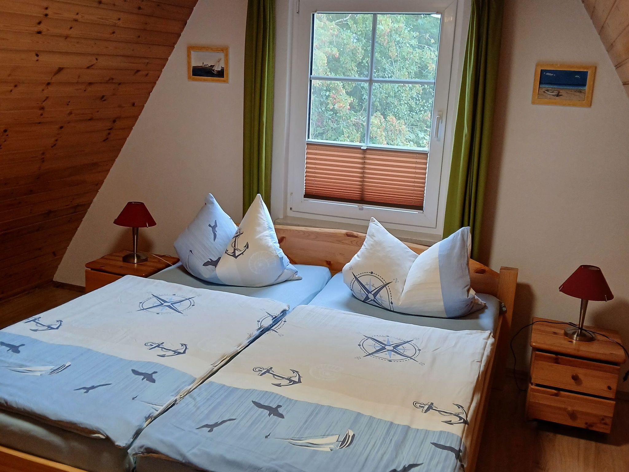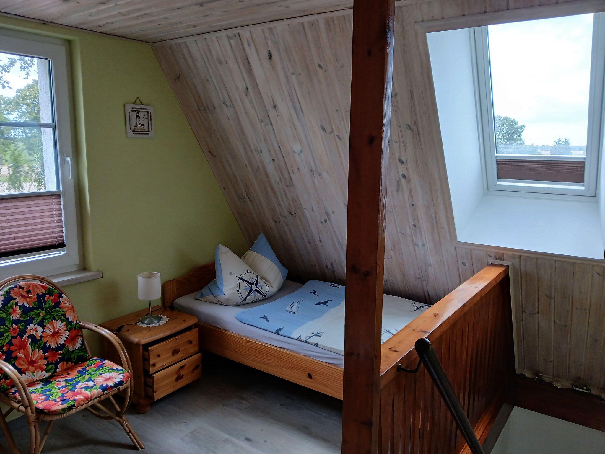 Dachgeschoß: 1 Schlafraum mit Doppelbett und 1 Kinderbett,1 Schlafraum mit 2 Einzelbetten. Terrasse mit Grill und Gartenmöbel, Räucherofen zum Räuchern von frischem Fisch. Ein Parkplatz steht ebenfalls zur Verfügung. Anreise ab 14.00 Uhr Abreise bis 10.00 Uhr. Erstausstattung Bettwäsche u. Erstausstattung Handtücher können Sie bei Bedarf mieten (Bettwäsche 10 EURO pro Pers. & Handtücher 5 EURO pro Pers.) oder selbst mitbringen.