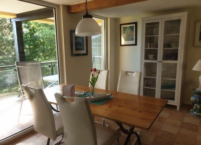 Die voll ausgestattete Küche lässt keine Wünsche offen. Sie finden hier eine Kaffeemaschine, einen Toaster und einen Wasserkocher, die Ihnen den Start in den Tag erleichtern. Der 4-Platten Herd mit Backofen ermöglicht es Ihnen, Ihre Lieblingsgerichte zu kochen, während der Kühlschrank mit Gefrierfach und der Geschirrspüler für zusätzlichen Komfort sorgen.