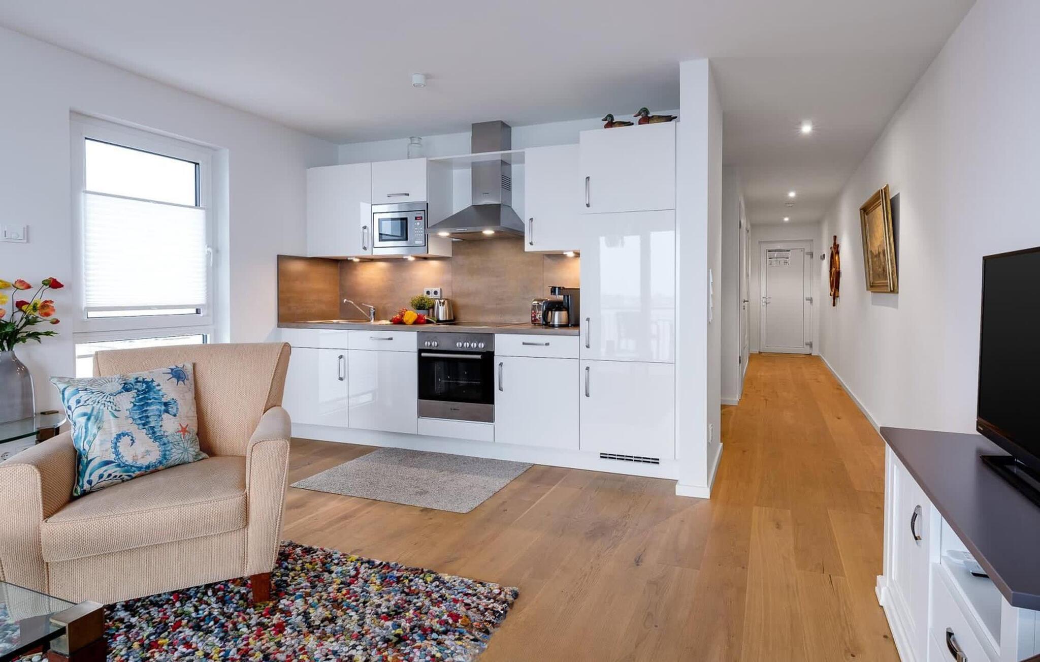 Barrierearm gestaltet ist diese Ferienwohnung bequem mit dem Fahrstuhl zu erreichen und verfügt über eine bodengleiche Dusche.