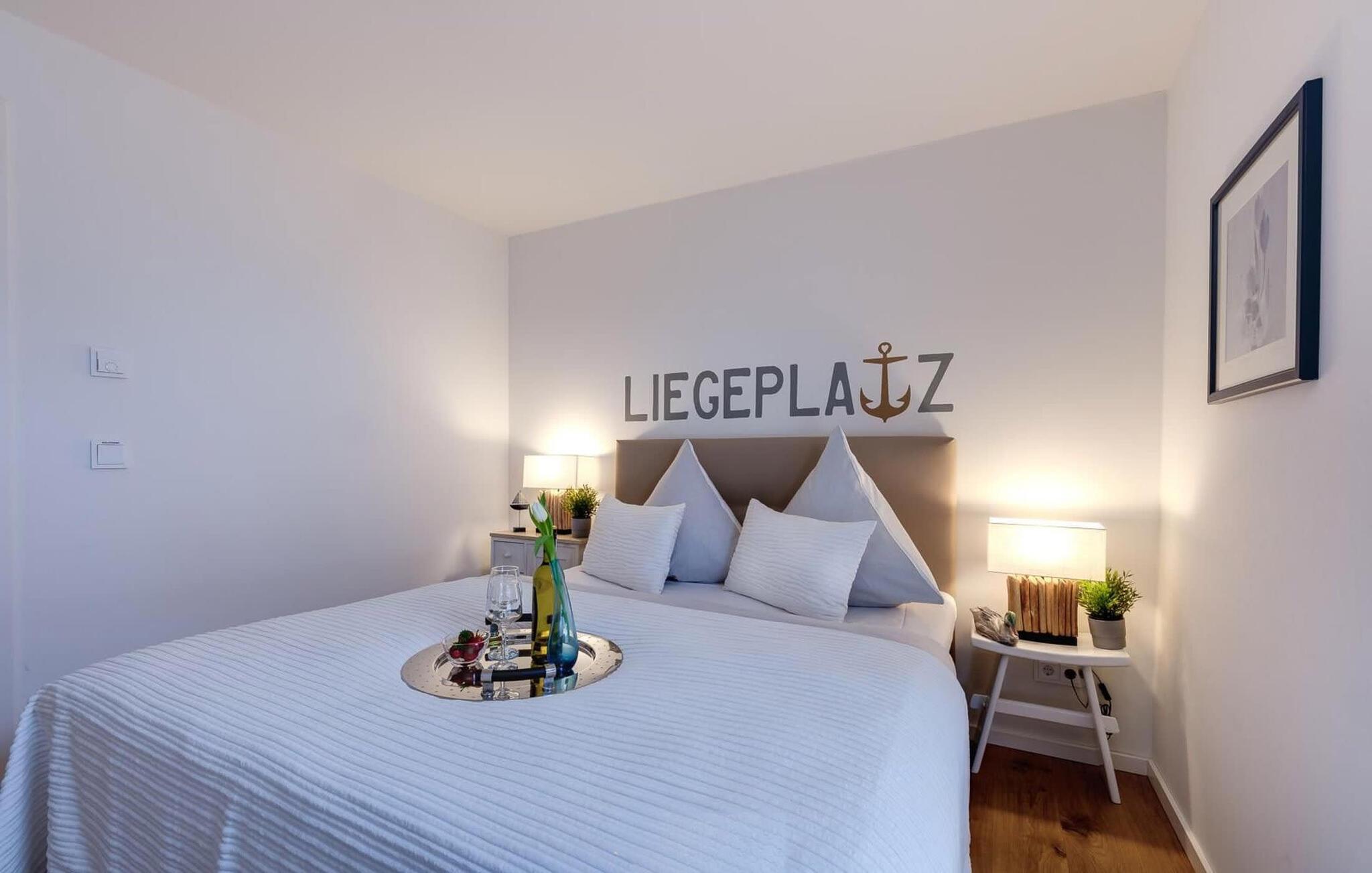 Unmittelbar an der Hafenpromenade des OstseeResort Olpenitz gelegen punktet diese lichtdurchflutete Ferienwohnung dank bodentiefer Fensterfront mit einem phänomenalen Weitblick über den Segel- und Sportboothafen, die schwimmenden Häuser und den Ostseefjord Schlei. Hafenkino ist hierbei garantiert, ebenso die bilderbuchreifen Sonnenuntergänge, die sich vom Balkon aus beobachten lassen.