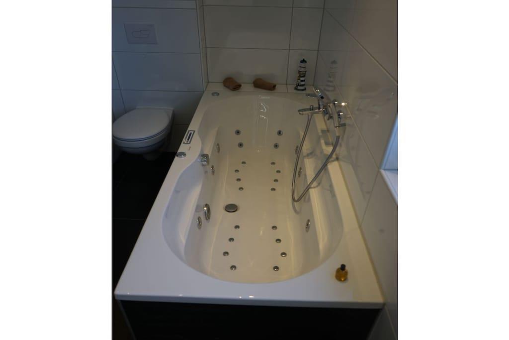Die Doppelhaushälfte bietet auf drei Etagen einen hohen Ausstattungsstandard. Die Haushälfte ist für die Nutzung durch max. 4 Erwachsene und 1 Kind bis 5 Jahre konzipiert. Es ist eines unser Anliegen , einen Sitz- und Schlafkomfort von hohem Standard und wellnessbezogene Entspannung zu bieten. Eines der Bäder ist mit einem Whirlpool ausgestattet. Im Dachgeschoss befinden sich eine Sauna für 4 Personen und Ruheliegen. Im Wohnzimmer erhalten Sie per Knofpdruck Wärme und Gemütlichkeit durch einen Gaskamin. Der Ausstattungsgrad der offenen Küche ist hoch. Selbige ist großzügig konzipiert, sodass selbst Zubereitung und Präsentation der Speisen ein Urlaubshöhepunkt darstellen könnte.