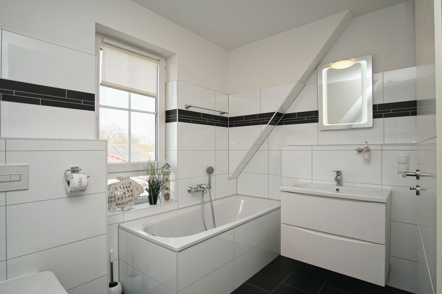 BAD // Tageslichtbad im OG mit Dusche, Badewanne, Waschbecken und WC, Gäste-WC im EG ++