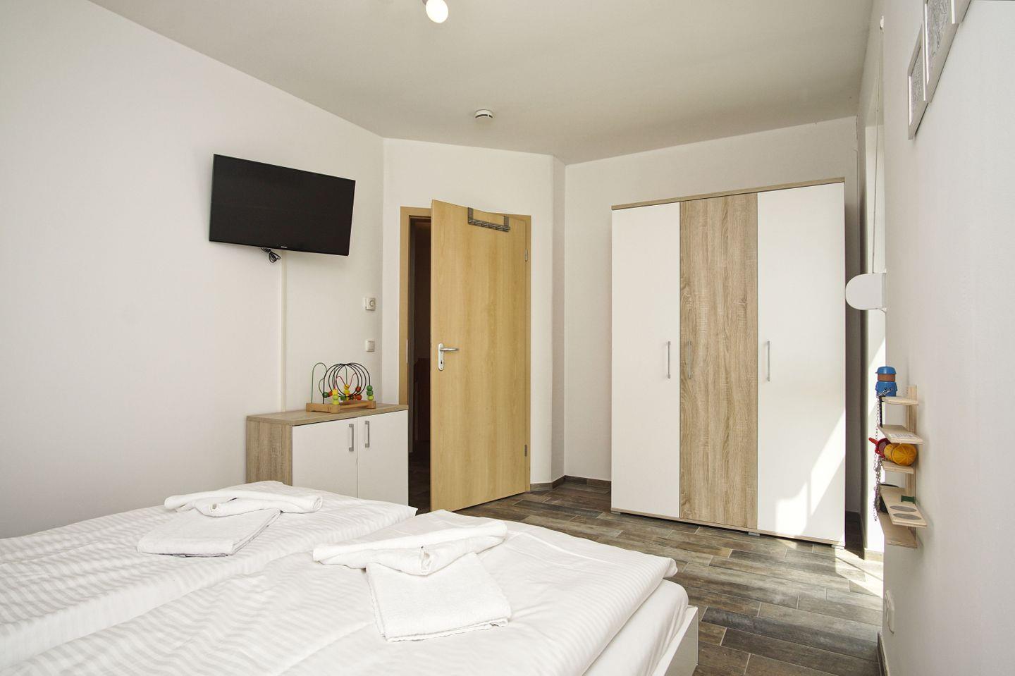 SCHLAFEN // zwei separate Schlafzimmer mit jeweils einem Doppelbett und einem Kleiderschrank, ein Schlafzimmer mit zwei Einzelbetten ++