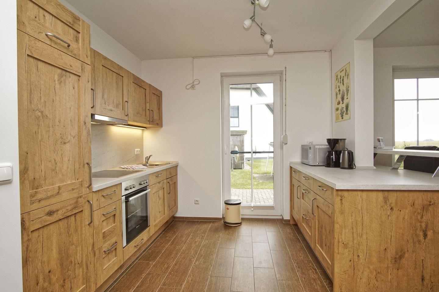 KÜCHE // offene Küche, 4-Platten Induktion, Kühlschrank mit Gefrierfach, Backofen, Mikrowelle, Toaster, Wasserkocher, Kaffeemaschine, reichlich Besteck, Geschirr und Küchenutensilien ++