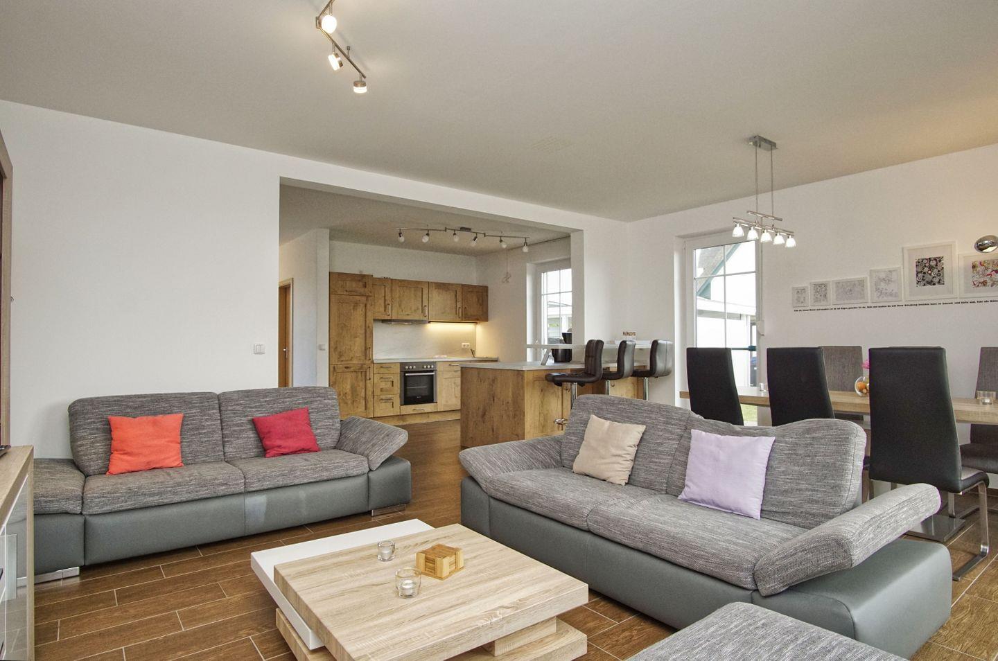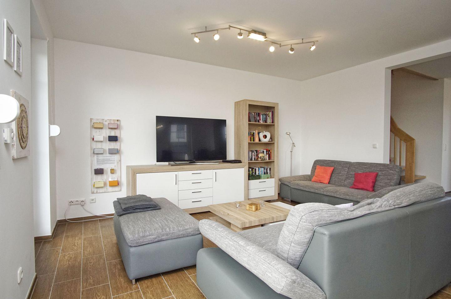 WOHNEN // Wohnraum mit Essbereich, Sitzgarnitur mit bequemer Couch, Flachbild-TV, CD + DVD-Player ++