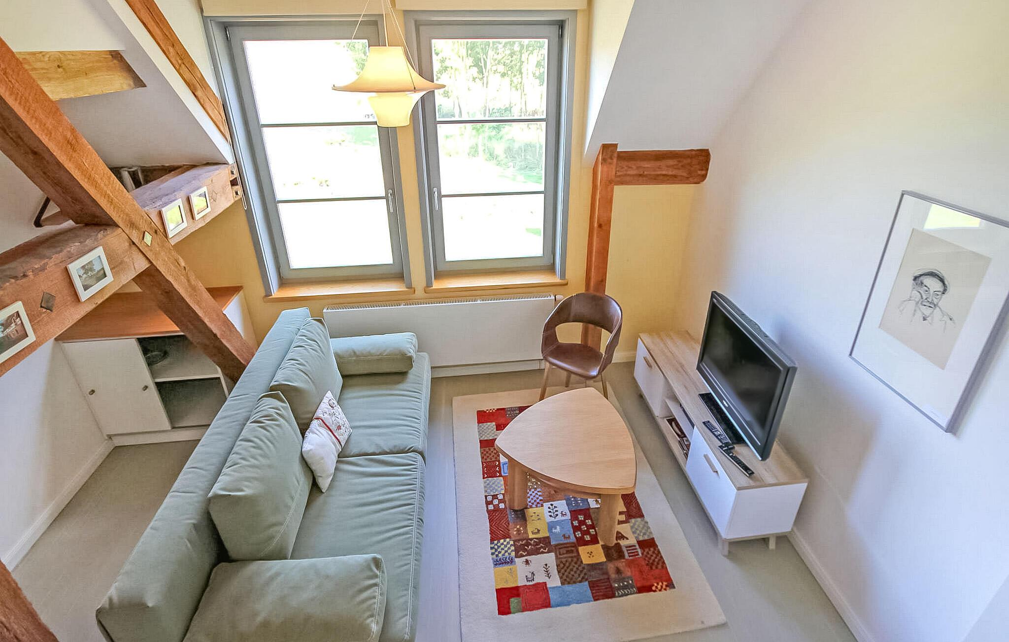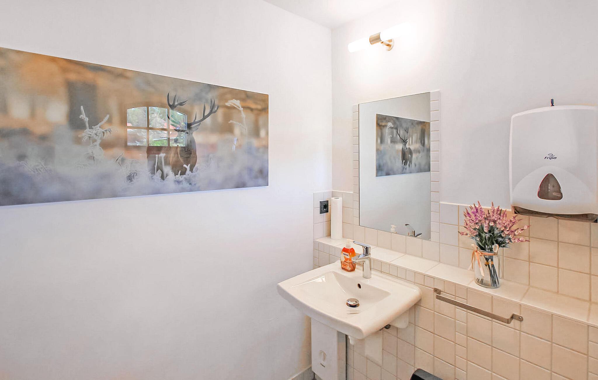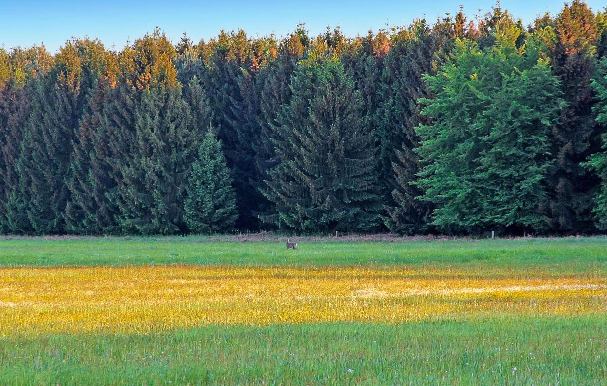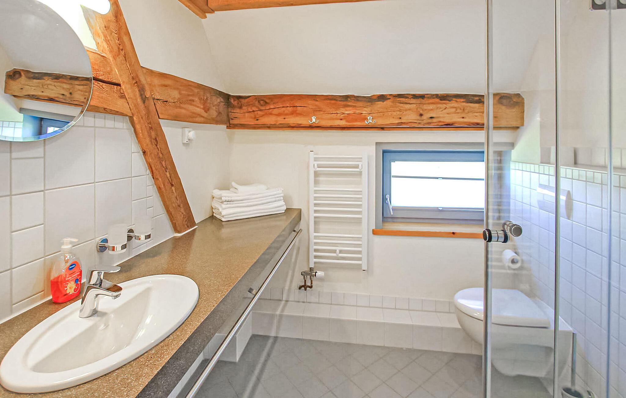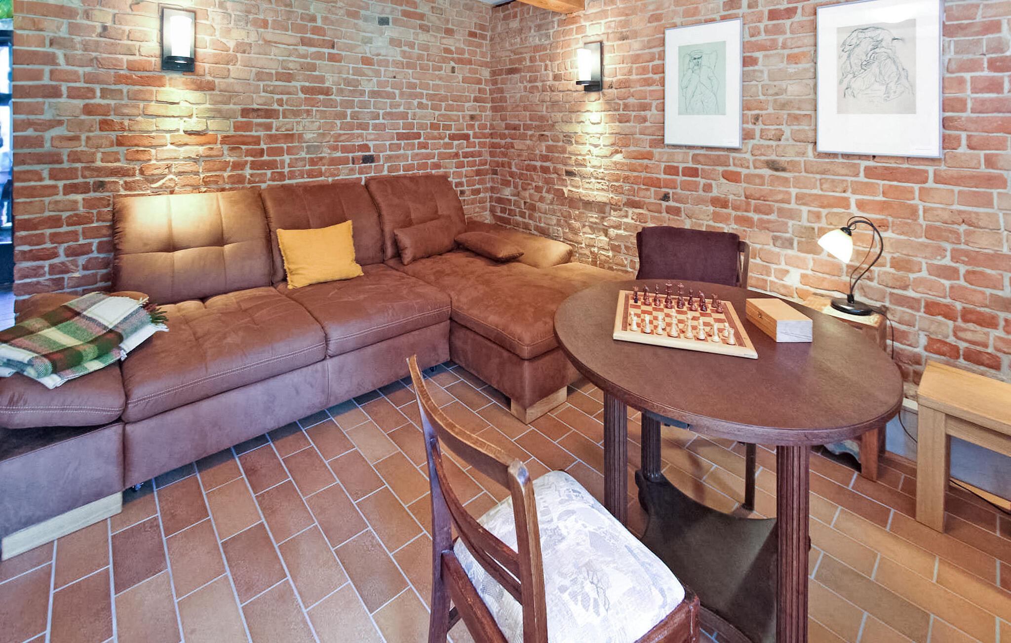 Wald, Wiesen, weites Land und ein Baudenkmal Das Komfort-Ferienhaus, eine ehemalige Scheune, befindet sich separat auf einem 5000 qm großen Naturgrundstück in absolut ruhiger Waldrandlage im Ortsteil Riesenbrück. Das Geburtshaus des überregional bedeutsamen vorpommerschen Malers und Zeichners Paul Holz befindet sich auf dem alten Hof. Das Ferienhaus wurde im Jahre 2016 sehr aufwendig komplettsaniert und hochwertig eingerichtet. Die Ausstattung genügt gehobenen Ansprüchen. Konzipiert wurde das Gebäude für einen komfortablen Aufenthalt kleinerer Gruppen oder befreundeter Familien. So gibt es im Erdgeschoss einen großen Gemeinschaftsraum mit Esstisch, Polster-Sitzecke, Kamin (Erstausstattung Kaminholz inkl., danach 3 EUR/Korb), Flachbild-TV und Hifi, eine moderne und komplett ausgestattete Küche, einem kombinierten Wohn-/Schlafraum mit Doppelbett sowie einem Gäste-WC. Im Obergeschoss befinden sich zwei separate Appartments mit je einem Wohnbereich mit 1-2 Schlafcouch(en) und TV, einem Schlafboden mit Doppelbett (Zugang über Raumspartreppe) sowie je einem Bad (1 x DU, 1 x Badewanne). Für Kleinkinder können ein Hochstuhl und ein Kinderreisebett zum Selbstaufbau (einfaches System) bereitgestellt werden. Weiterhin gibt es kostenloses W-LAN sowie Netflix. Das gesamte Ferienhaus ist sowohl im Innen- als auch im Außenbereich sehr großzügig bemessen, sodass sich auch für größere Gruppen genügend Rückzugsmöglichkeiten und Ruhezonen ergeben. Im Außenbereich gibt es mehrere möblierte Sitzecken (teilweise überdacht), Lagerfeuer- und Grillplatz, Sonnenliegen, Fahrradunterstellmöglichkeit und Parkplätze. Nutzung der Außensauna nach Absprache. Einfache Fahrräder können nach Absprache vor Ort gemietet werden. Direkt vom Grundstück sind Wildbeobachtungen von heimischen Schalenwildarten wie Rot-, Dam-, Reh- und Schwarzwild möglich. Hierfür können Fernglas/Spektiv auf Anfrage vor Ort geliehen werden. Ausserhalb der Haupturlaubssaison wird die Unterkunft gerne auch von mobilen Montageteams bzw. Firmen gebucht. Wir bieten großzügige Wohnmöglichkeiten zu günstigen Sonderkonditionen auch für kleinere Gruppen. Haustiere: In diesem Objekt ist die Mitreise ausdrücklich eines Haustieres erlaubt .