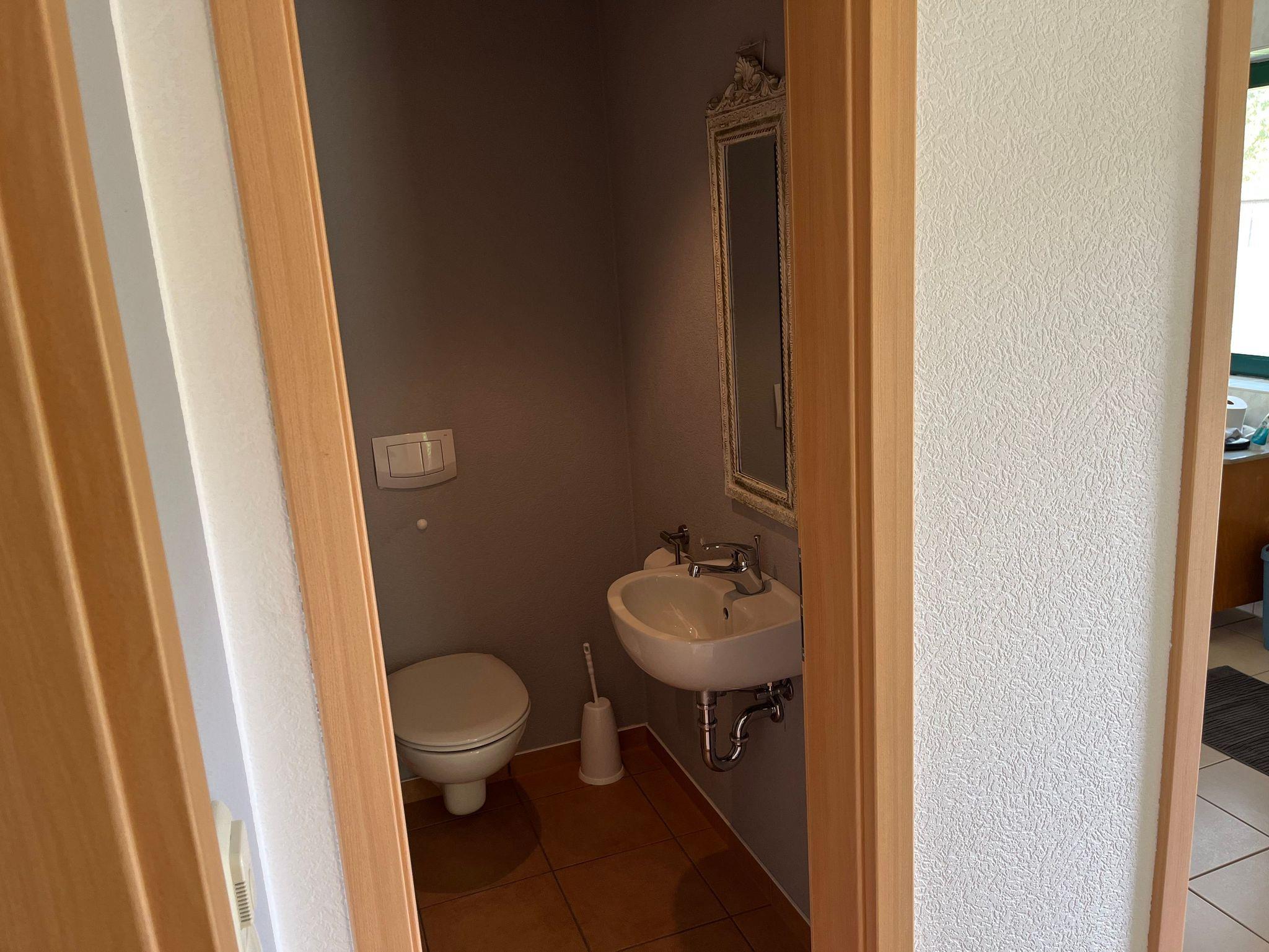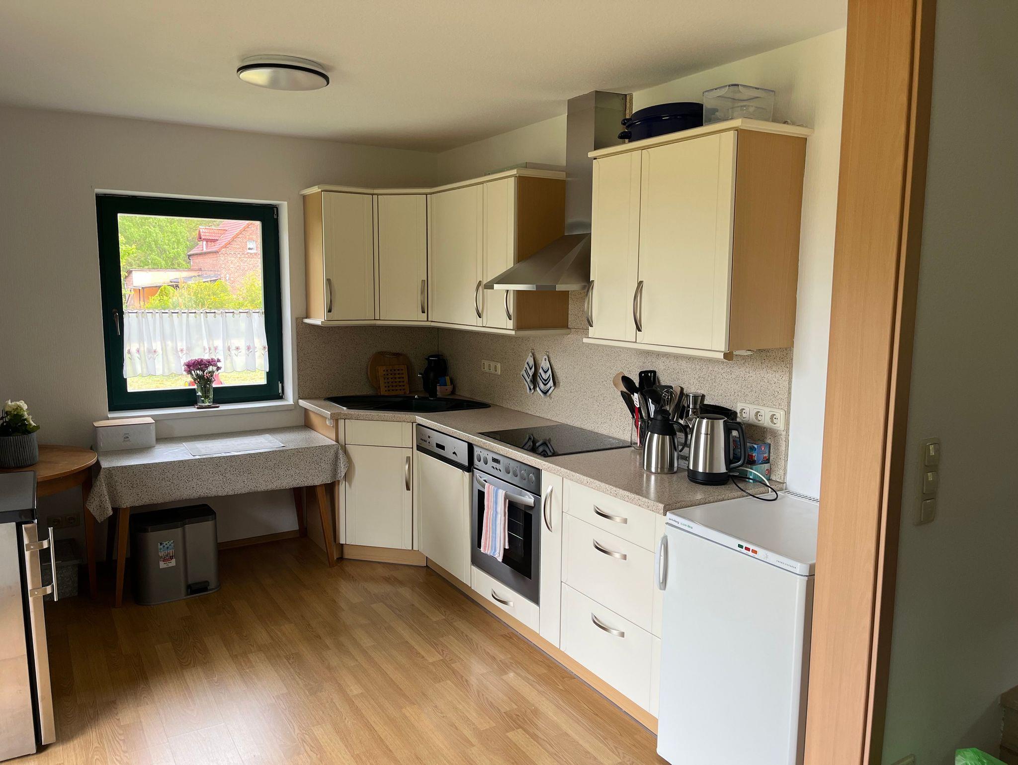 Küche: Laminat, Herd, Geschirrspüler, Toaster, Kühlschrank, Spüle