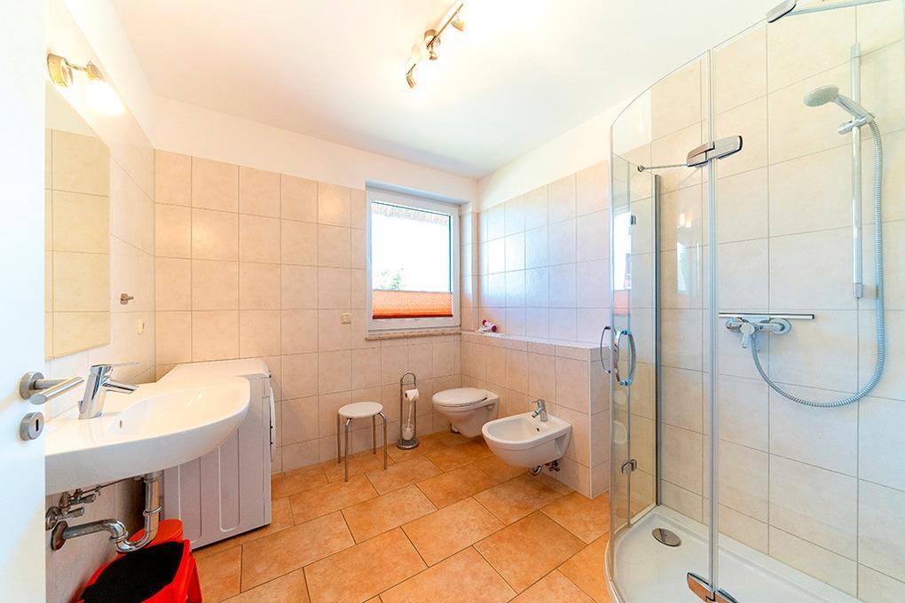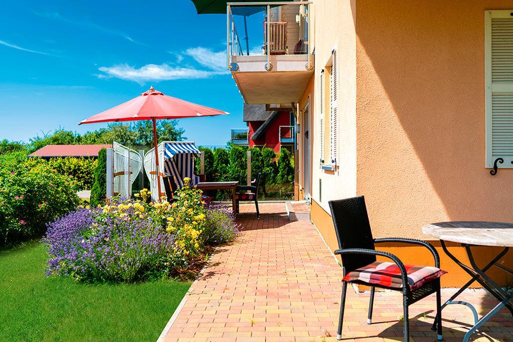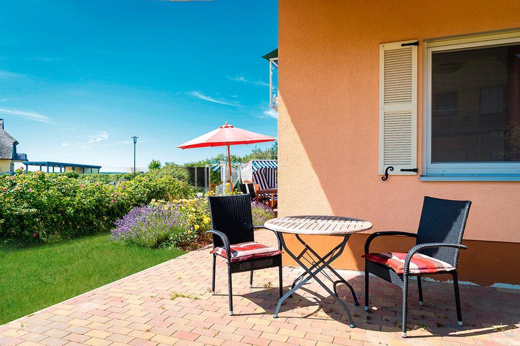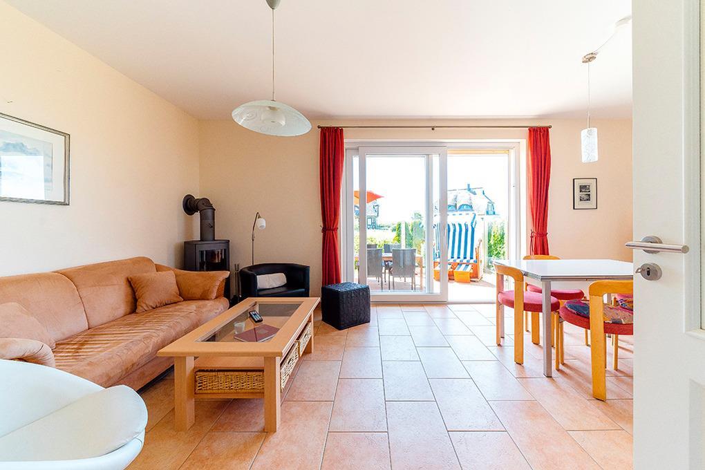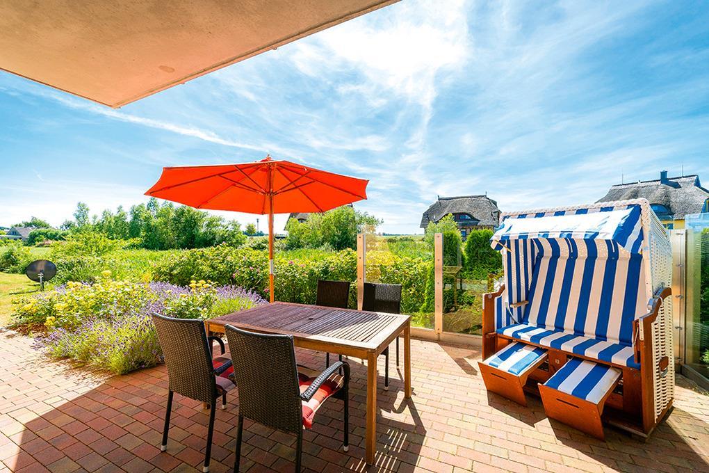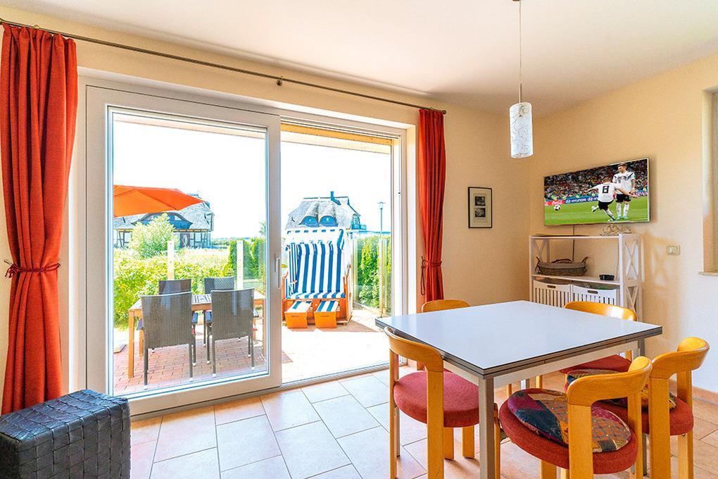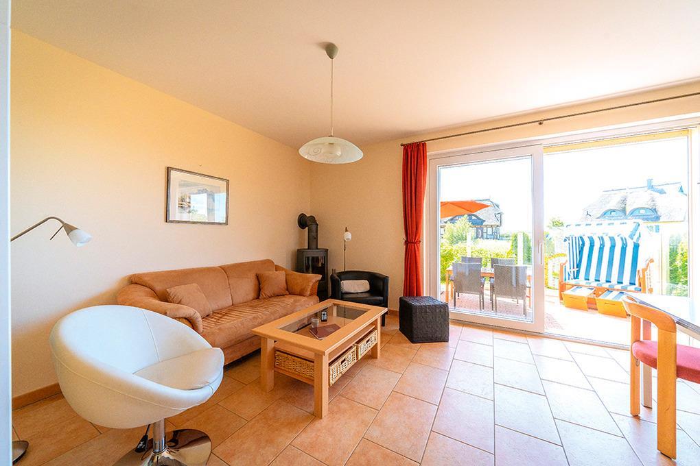 D 128.39 Ferienwohnung 2-4 Pers.: Moderne 3-Zimmerwohnung mit 65 qm Wohnfläche. Parterre: Wohn-/Essraum mit Kaminofen, Couchgarnitur, Sat-TV, Radio-CD, Esstisch, gut ausgestatteter Küchenzeile (Backofen, Spülmaschine). Zwei Doppelzimmer. Bad: Du, Wb, WC, Bidet, Waschmaschine. Großzügige Terrasse mit Sitzmöbeln, Liegestühlen, Glaseinfassung als Windschutz, angrenzender Rasenfläche, Wasserblick. Weitere Terrasse mit Strandkorb, Wasserblick.