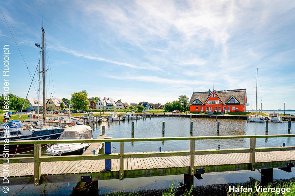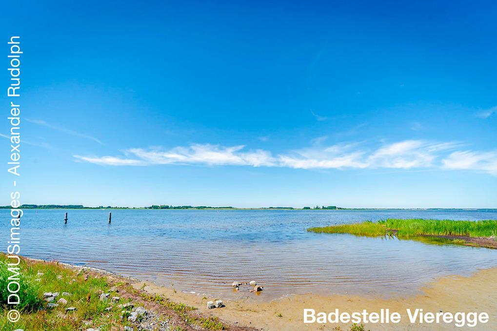 Ort: Vieregge. Hervorragende Lage direkt am Breetzer Bodden (40 m) im Nord-Westen der Insel Rügen. Badestelle Bodden 150 m. Yachthafen mit Hafenbistro (Brötchenservice), Bootsverleih, Kinderspielplatz. Kosmetikstudio mit Wellnessanwendungen. Ortsmitte Gingst mit Geschäften, Restaurants 12 km. Bergen mit Geschäften 20 km. Schöner Sandstrand an der Prorer Wiek, zwischen Binz und Sassnitz, 36 km. Schaprode mit Ausflugsschiffen 22 km.