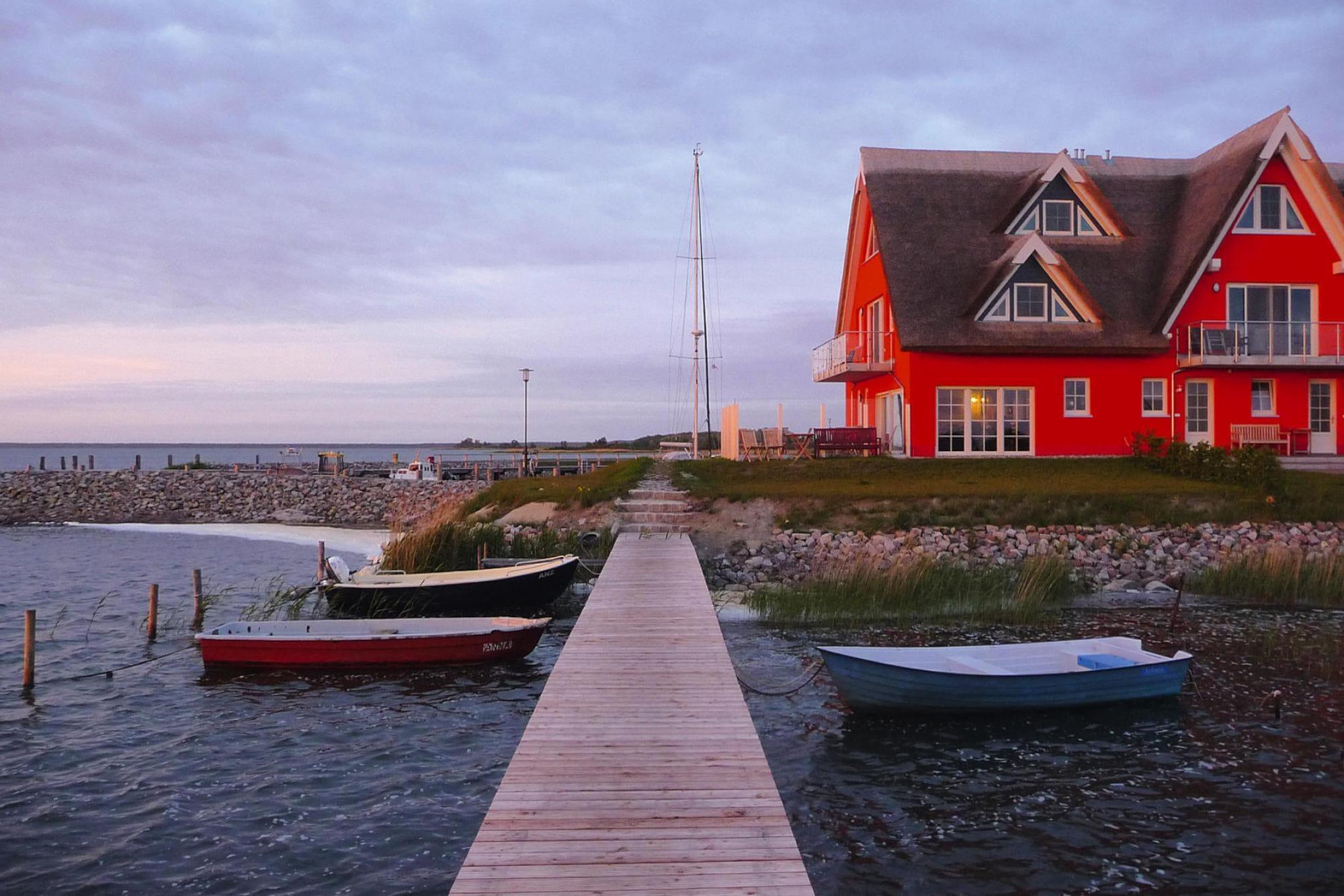 Unmittelbar am Wasser befindet sich dieses Appartementhaus mit exclusiven Ferienwohnungen und einer tollen Aussicht vom Balkon Ihrer Ferienwohnung. Das Appartementhaus ist gleichzeitig das Fährhaus des kleinen Hafendorfes Vieregge und Sie können per Charterboot von hier aus nach Breege fahren. Ihr Urlaubsdomizil liegt im Nord-Westen Rügens, der zu den landschaftlich reizvollsten Gegenden der Insel zählt. Abseits der touristischen Zentren finden Sie hier Ruhe und stoßen auf seltene Flora und Fauna. Wellness im Hafendorf Vieregge: Die neu errichtete Wellnessoase in einem der Reetdachhäusern bietet Ihnen ein vielfältiges Beauty- und Wellnessprogramm. Wählen Sie zwischen einem umfangreichen Massageangebot, verwöhnenden Kosmetikanwendungen oder pflegenden Hand- und Fußbehandlungen. Das freundliche Personal geht ganz individuell auf Ihre Bedürfnisse ein. Highlights inklusive: Alle verbrauchsabhängigen Energiekosten WLAN Parkplatz direkt am Objekt Aktivitäten in der Nähe: Vieregge, ein beschauliches kleines Fischerdorf, liegt direkt am Breetzer Bodden im Nordwesten der Insel Rügen. Er ist Teil einer ganzen Kette von Boddengewässern im Nationalpark Vorpommersche Boddenlandschaft. Hier rasten im Herbst Tausende von Kranichen und bieten ein spektakuläres Naturschauspiel. Der Bodden ist ein ideales Revier für alle Arten von Wassersport und wird auch von Anglern sehr geschätzt. Nur wenige Kilometer von Vieregge entfernt befindet sich die Schaabe, eine 12 km lange Nehrung, die mit ihrem feinen Sand als einer der schönsten Badestrände Rügens gilt. Gegenüber von Vieregge liegt die Insel Hiddensee, die man von Schaprode aus mit der Fähre ansteuern kann. Die bekannten Sehenswürdigkeiten der Insel wie die Kreidefelsen, das Jagdschloss Granitz oder die weiße Stadt Putbus sind mit dem PKW in weniger als 45 Min. erreicht.