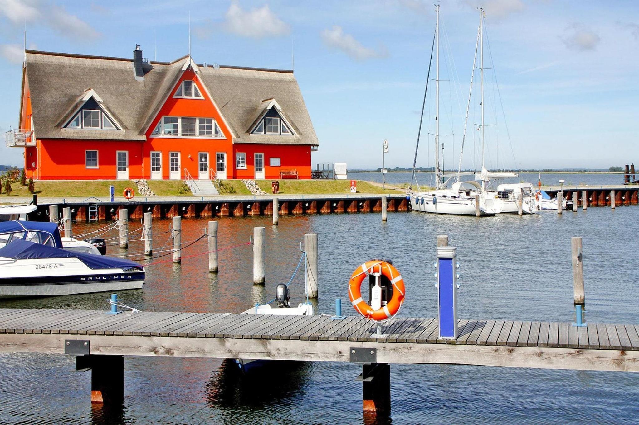Direkt am Breetzer Bodden: Moderne und hochwertige Doppelhaushälfte mit Sauna, Kamin und WLAN und vollständig umzäunten Grundstück, nur 100 Meter vom Wasser entfernt. Das Reetdachhaus mit seinen beiden Haushälften ist perfekt für befreundete Familien (2. Haushälfte: DOS07189), denn beide Grundstücke sind über ein Törchen miteinander verbunden. Ideal für Gäste mit Kindern oder Hunde: Das Gartengrundstück der Haushälfte ist vollständig mit einem 80 cm hohen Zaun umzäunt. Wellness im Hafendorf Vieregge: Die neu errichtete Wellnessoase in einem der Reetdachhäusern bietet Ihnen ein vielfältiges Beauty- und Wellnessprogramm. Wählen Sie zwischen einem umfangreichen Massageangebot, verwöhnenden Kosmetikanwendungen oder pflegenden Hand- und Fußbehandlungen. Das freundliche Personal geht ganz individuell auf Ihre Bedürfnisse ein. Highlights inklusive: Alle verbrauchsabhängigen Energiekosten WLAN Aktivitäten in der Nähe: Vieregge, ein beschauliches kleines Fischerdorf, liegt direkt am Breetzer Bodden im Nordwesten der Insel Rügen. Er ist Teil einer ganzen Kette von Boddengewässern im Nationalpark Vorpommersche Boddenlandschaft. Hier rasten im Herbst Tausende von Kranichen und bieten ein spektakuläres Naturschauspiel. Der Bodden ist ein ideales Revier für alle Arten von Wassersport und wird auch von Anglern sehr geschätzt. Nur wenige Kilometer von Vieregge entfernt befindet sich die Schaabe, eine zwölf Kilometer lange Nehrung, die mit ihrem feinen Sand als einer der schönsten Badestrände Rügens gilt. Gegenüber von Vieregge liegt die Insel Hiddensee, die man von Schaprode aus mit der Fähre ansteuern kann. Die bekannten Sehenswürdigkeiten der Insel wie die Kreidefelsen, das Jagdschloss Granitz oder die weiße Stadt Putbus sind mit dem PKW in weniger als 45 Minuten erreicht.