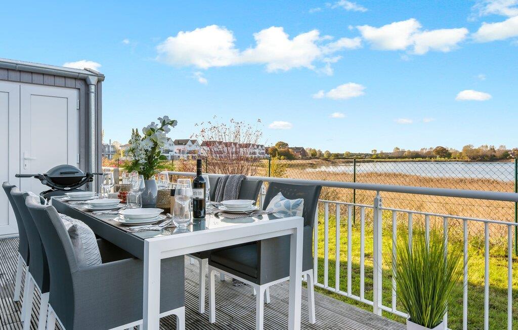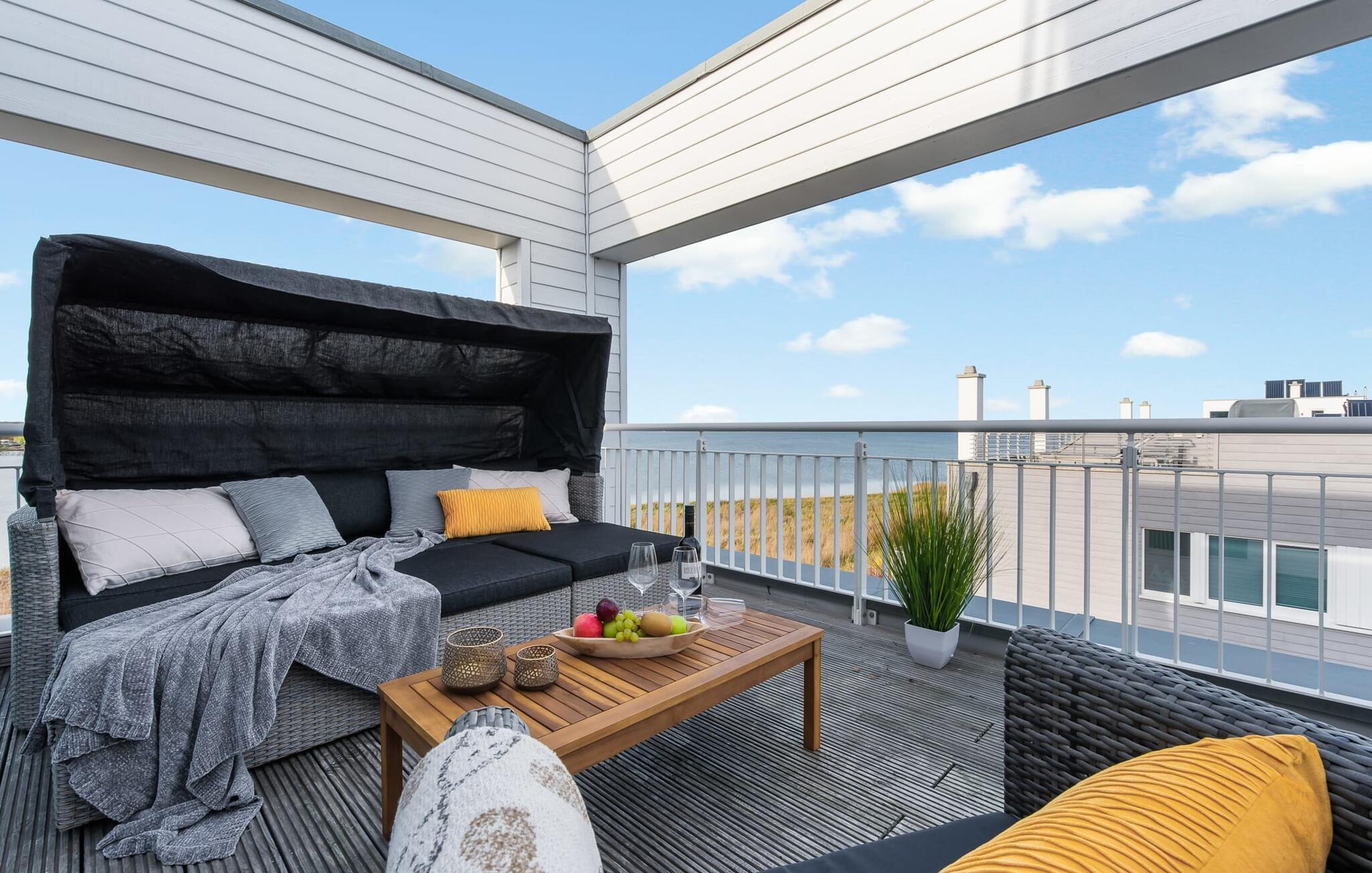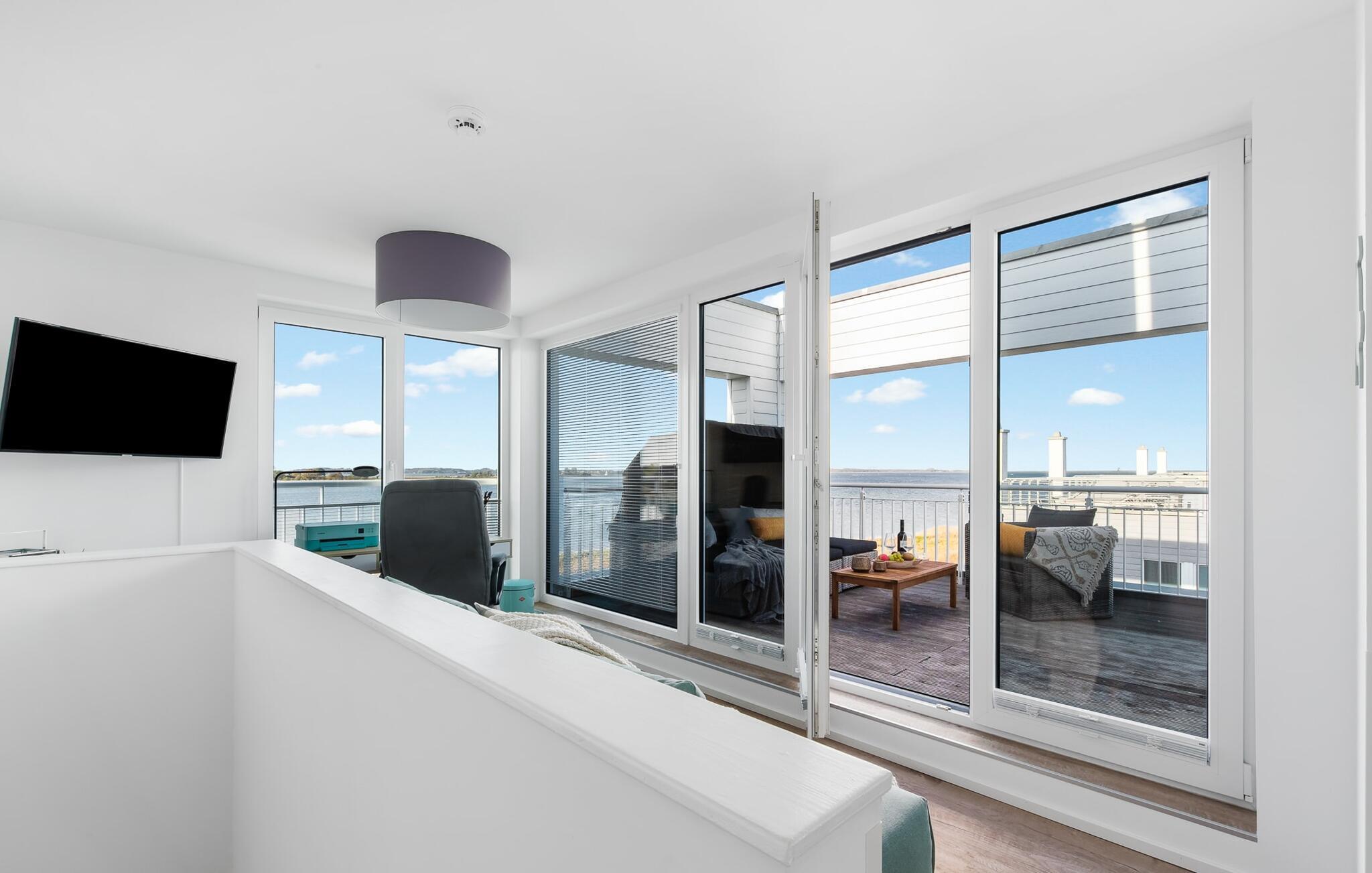 Auf drei Wohnebenen lässt es sich in der VILLA D’ORO entspannen. Das Highlight bietet ein Studio im zweiten Obergeschoss mit angrenzender Dachterrasse und Blick über die Schlei bis nach Maasholm.