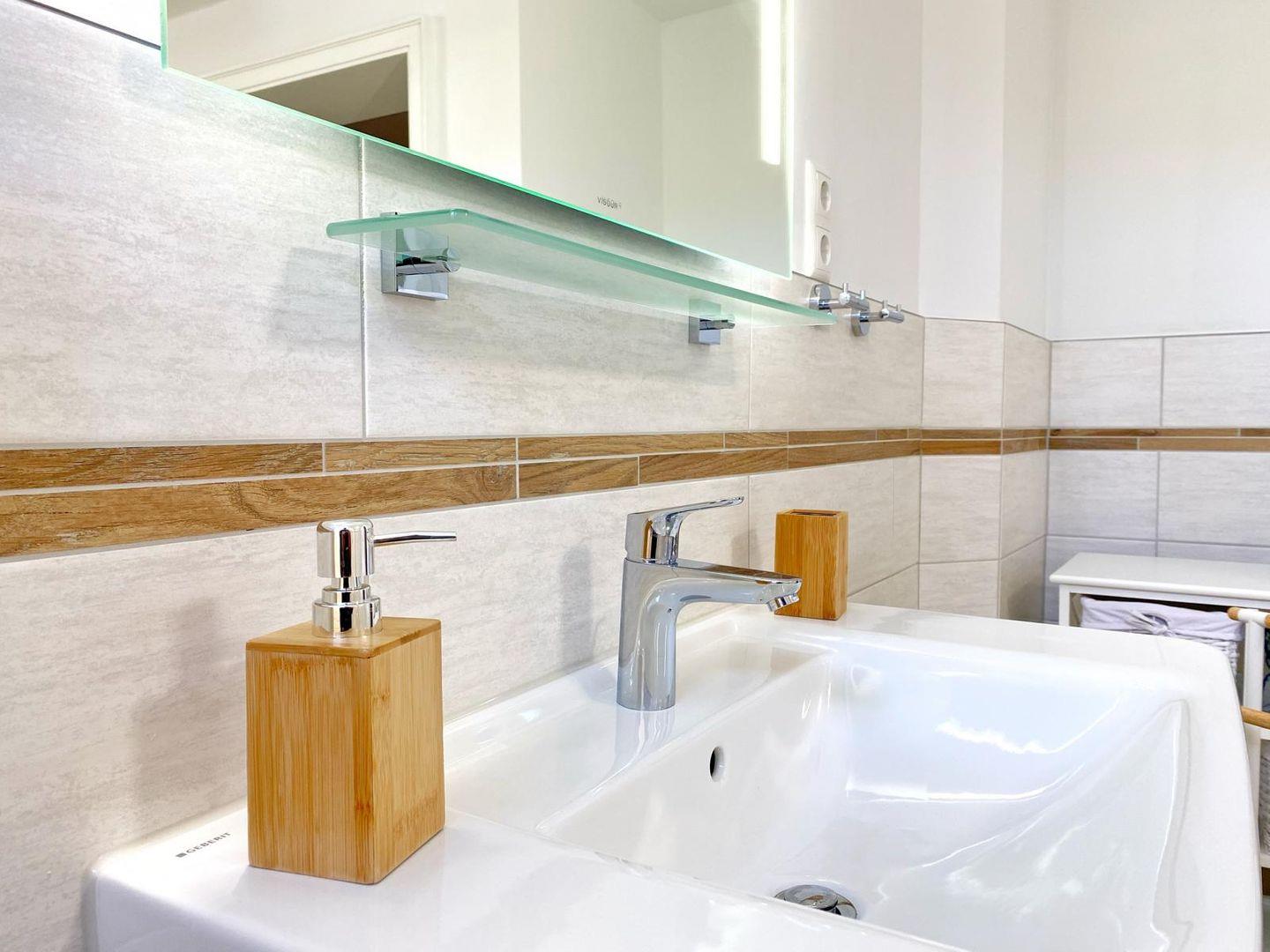 In dem kleinen, wunderschönen Örtchen Vilmnitz, direkt an der "Deutschen Alleenstraße" zwischen dem Ostseebad Binz und der zauberhaften Residenzstadt Putbus gelegen, befinden sich im reetgedeckten Ferienhaus insgesamt drei Ferienwohnungen. Die Ferienwohnung "Vilm" befindet sich im Erdgeschoß des Reetdachhauses. Die Ferienwohnungen "Goor" und "Muglitz" sind über eine separate Außentreppe im 1. OG zu erreichen. Die Wohnung "Vilm" mit einer Wohnfläche von ca. 105qm bietet Platz für maximal 5 Personen. Die Wohnung "Goor" mit einer Wohnfläche von ca. 92 qm bietet Platz für insgesamt 5 Personen. Die Wohnung "Muglitz" mit einer Wohnfläche von ca. 50 qm bietet Platz für insgesamt 3 Personen. Alle drei Wohnungen zusammen sind ideal für einen Urlaub mit Freunden oder in Großfamilie. Im liebevoll angelegten Bauerngarten stehen ausreichend Sitz-und Grillmöglichkeiten zur gemeinschaftlichen Nutzung zur Verfügung. Das insgesamt ca. 3000 qm große eingezäunte Grundstück verfügt über einen gepflasterten Vorplatz, über den man den großen Carport mit 3 Stellplätzen und Fahrradunterstellmöglichkeiten erreicht. Ihr Elektroauto können Sie während Ihres Aufenthaltes an der privaten E-Ladesäule im Carport laden. Im Haus gibt es ein WLAN und eine gemeinschaftliche Waschmaschine.