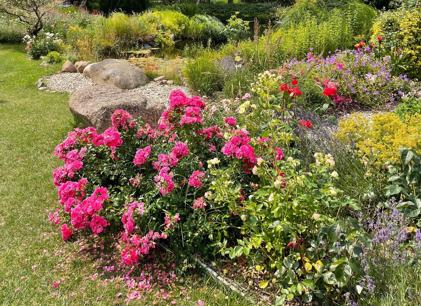 In dem kleinen, wunderschönen Örtchen Vilmnitz, direkt an der "Deutschen Alleenstraße" zwischen dem Ostseebad Binz und der zauberhaften Residenzstadt Putbus gelegen, befinden sich im reetgedeckten Ferienhaus insgesamt drei Ferienwohnungen. Die Ferienwohnung "Vilm" befindet sich im Erdgeschoß des Reetdachhauses. Die Ferienwohnungen "Goor" und "Muglitz" sind über eine separate Außentreppe im 1. OG zu erreichen. Die Wohnung "Vilm" mit einer Wohnfläche von ca. 105qm bietet Platz für maximal 5 Personen. Die Wohnung "Goor" mit einer Wohnfläche von ca. 92 qm bietet Platz für insgesamt 5 Personen. Die Wohnung "Muglitz" mit einer Wohnfläche von ca. 50 qm bietet Platz für insgesamt 3 Personen. Alle drei Wohnungen zusammen sind ideal für einen Urlaub mit Freunden oder in Großfamilie. Im liebevoll angelegten Bauerngarten stehen ausreichend Sitz-und Grillmöglichkeiten zur gemeinschaftlichen Nutzung zur Verfügung.Das insgesamt ca. 3000 qm große eingezäunte Grundstück verfügt über einen gepflasterten Vorplatz, über den man den großen Carport mit 3 Stellplätzen und Fahrradunterstellmöglichkeiten erreicht. Ihr Elektroauto können Sie während Ihres Aufenthaltes an der privaten E-Ladesäule im Carport laden. Im Haus gibt es ein WLAN und eine gemeinschaftliche Waschmaschine.