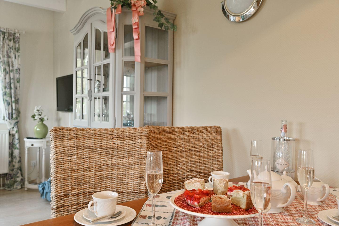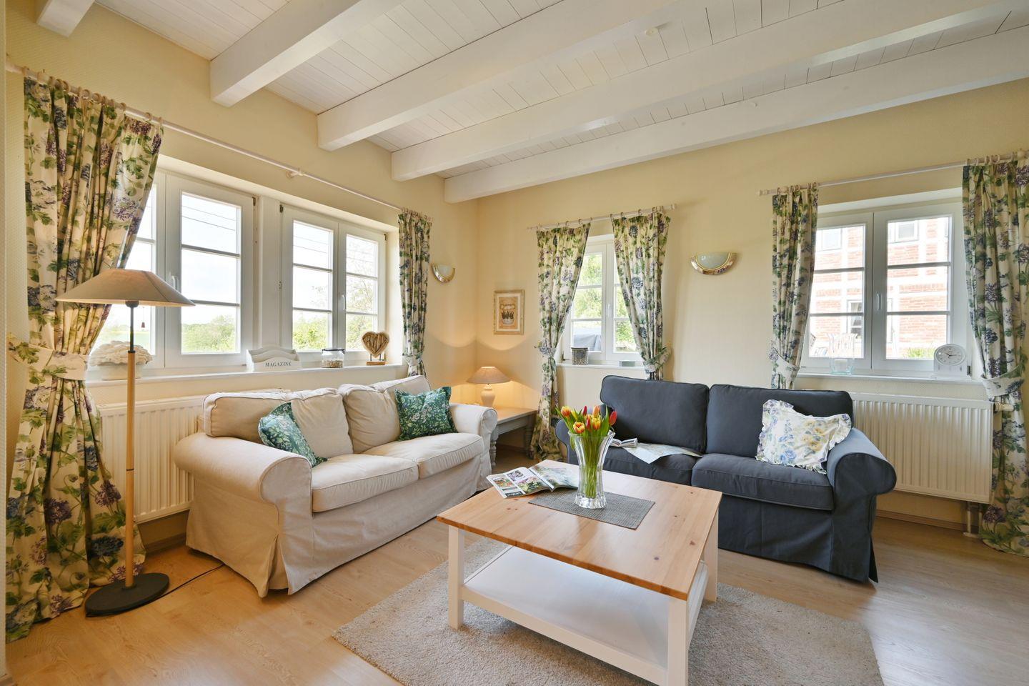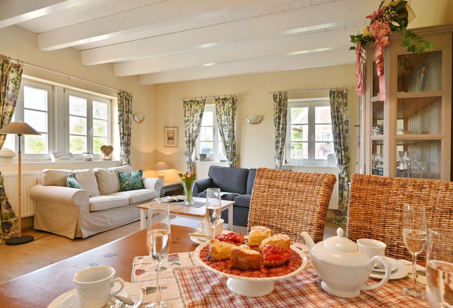 Die Ferienwohnung ist farblich aufeinander abgestimmt und mit viel Liebe zum Detail im Landhausstil eingerichtet.
