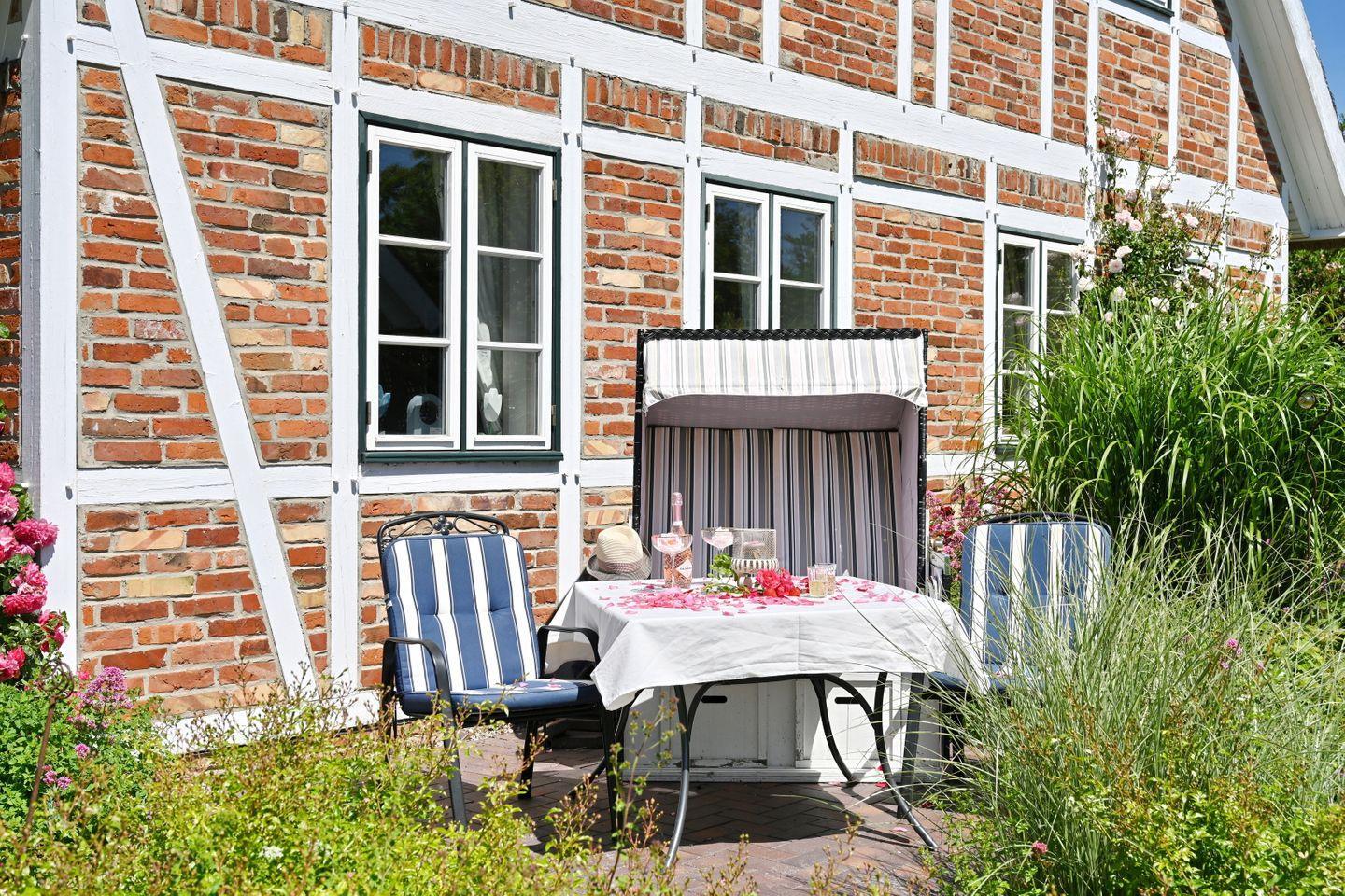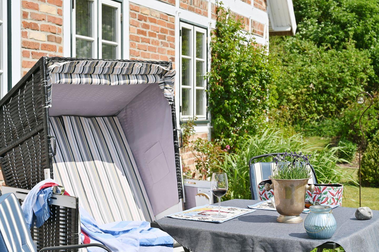 Zu jeder der Wohnungen gehört eine separate Terrasse in der wunderschönen großen Gartenanlage incl. Strandkorb und Gartenmöbeln. WLAN ist vorhanden.