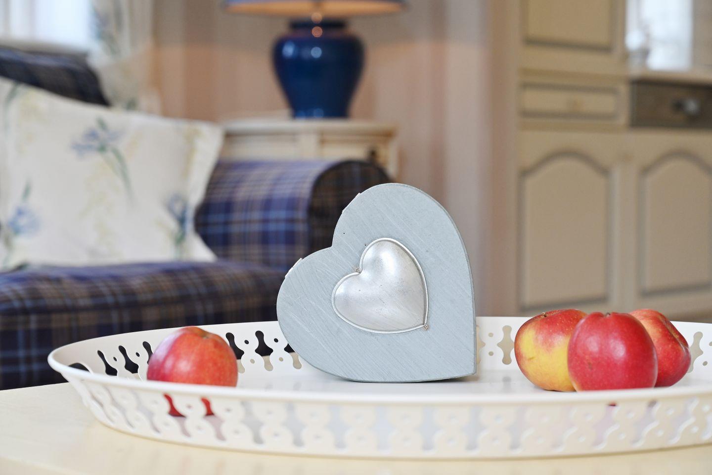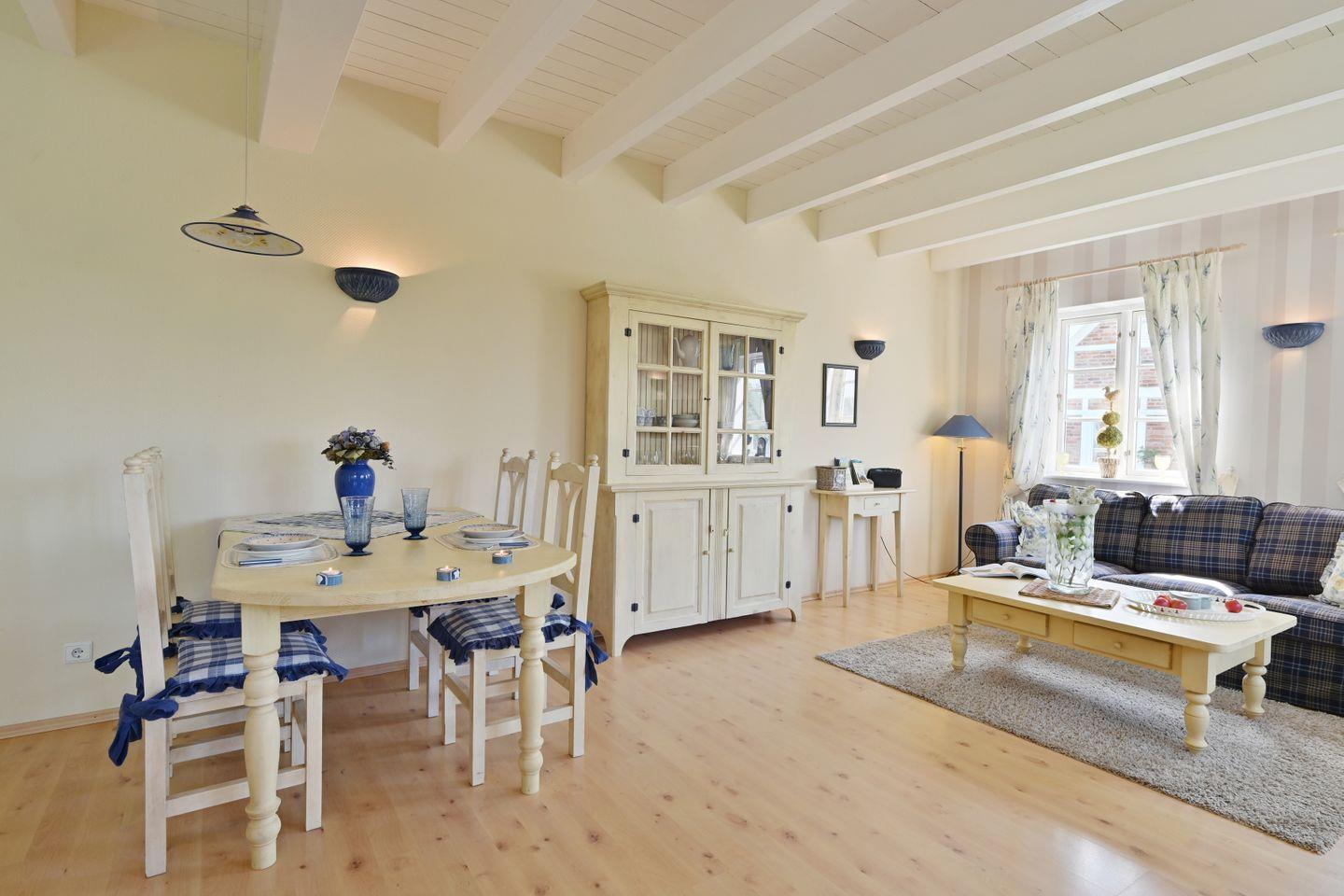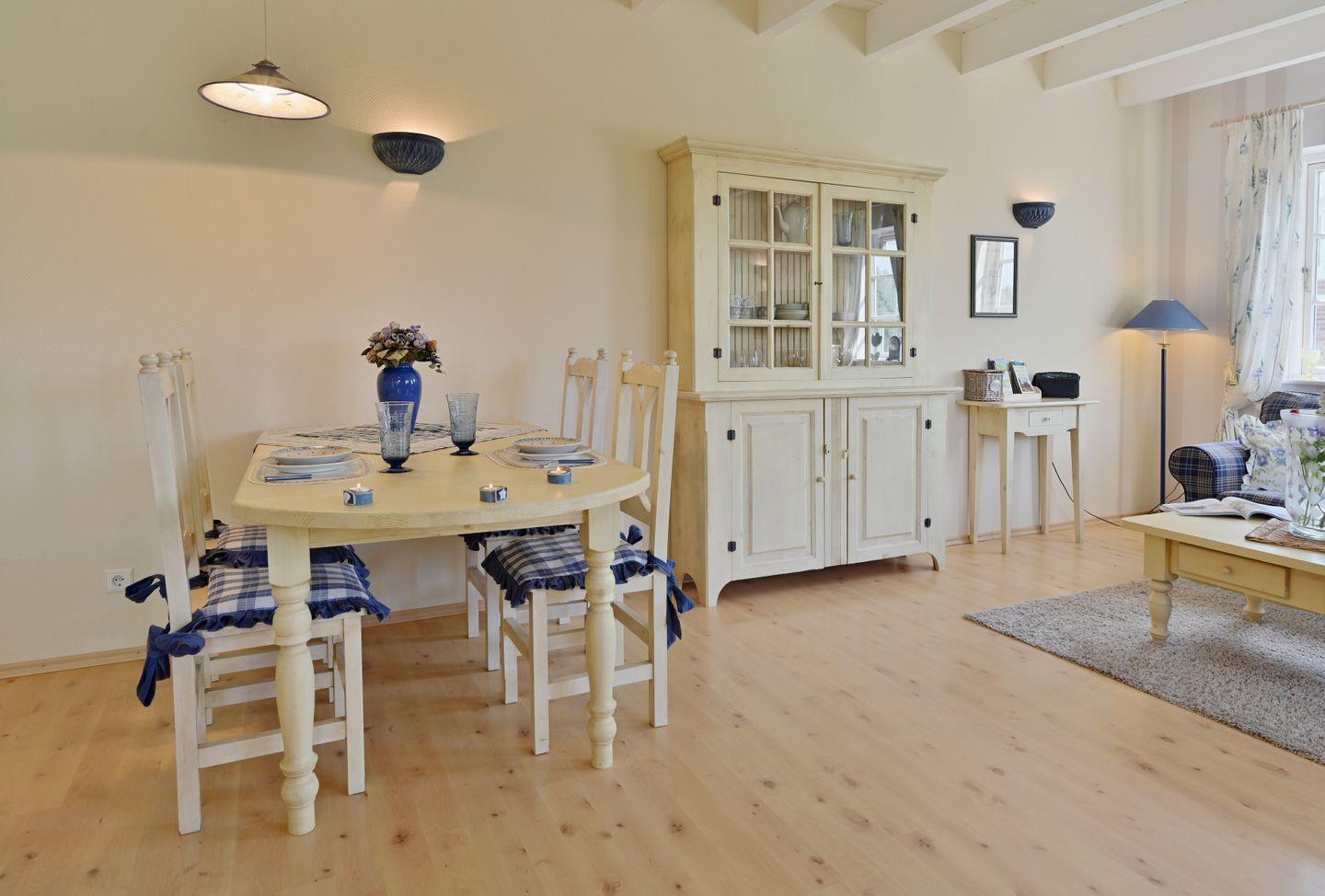 Die Ferienwohnung ist farblich aufeinander abgestimmt und mit viel Liebe zum Detail im Landhausstil eingerichtet.