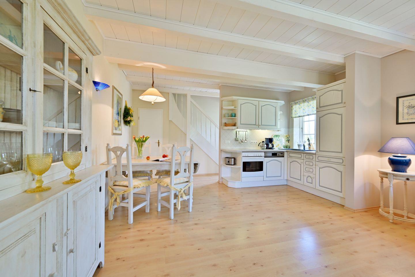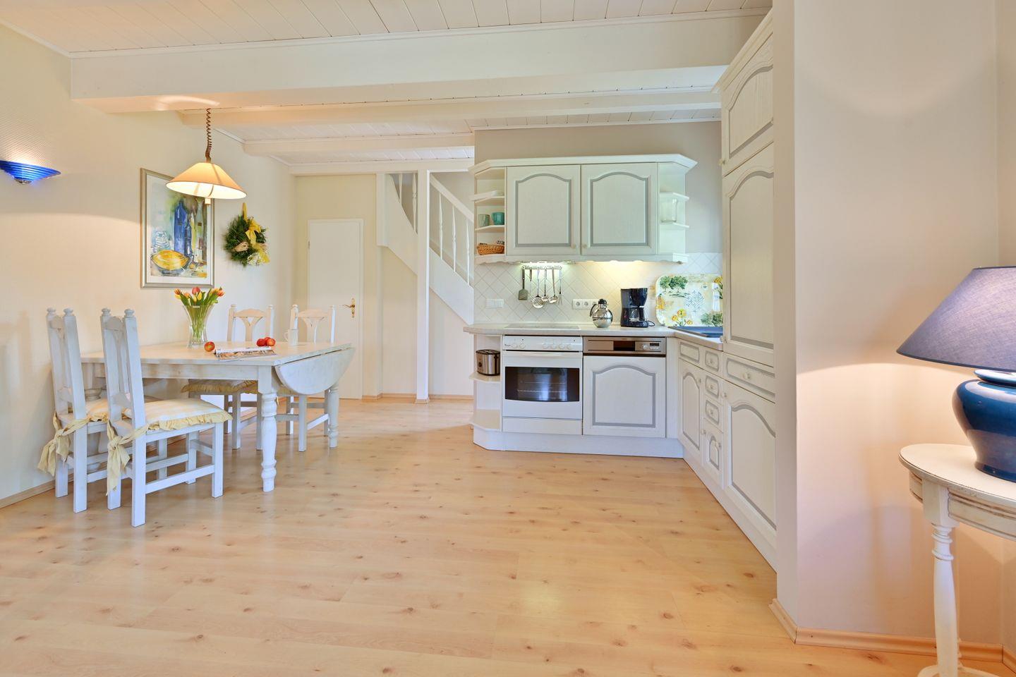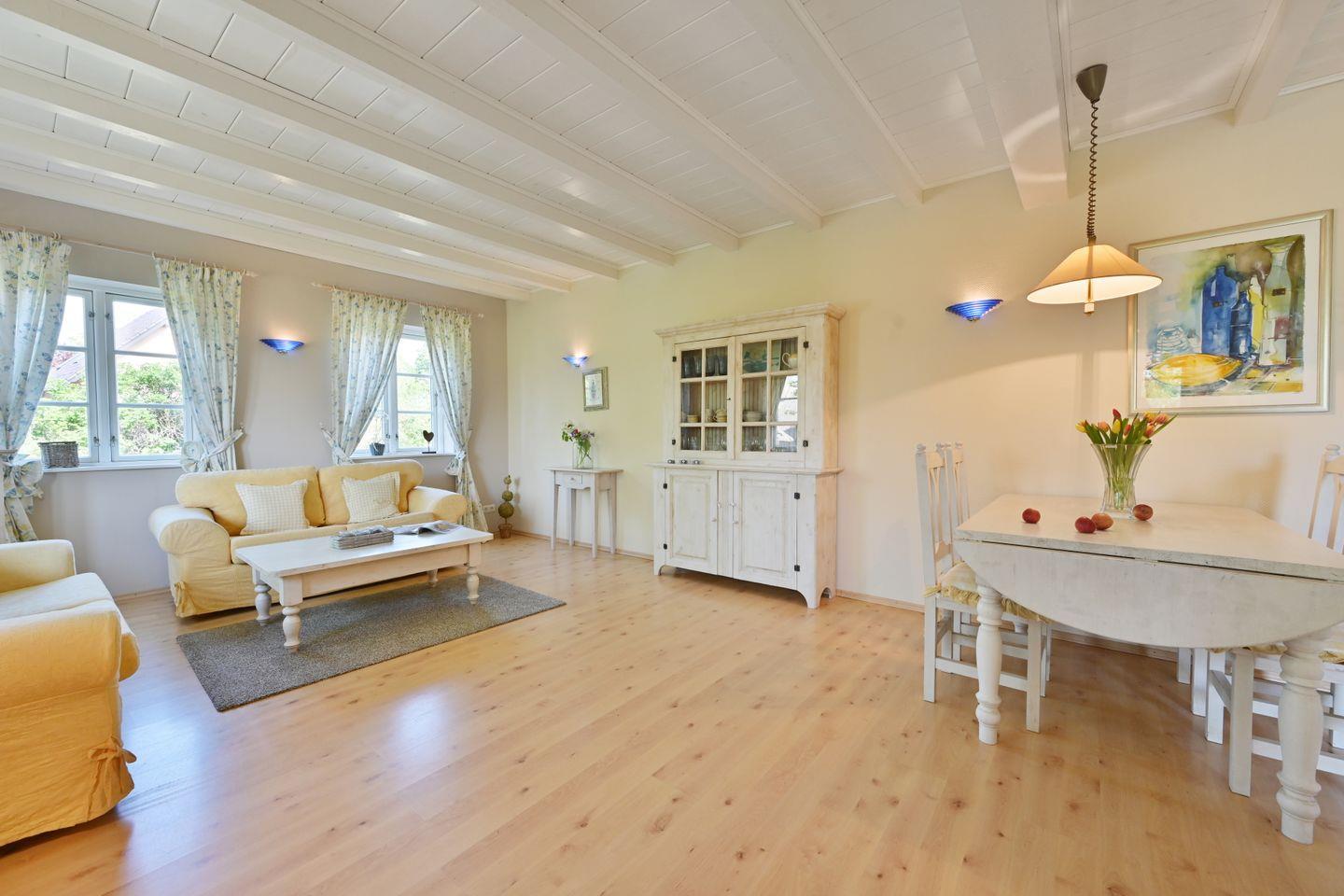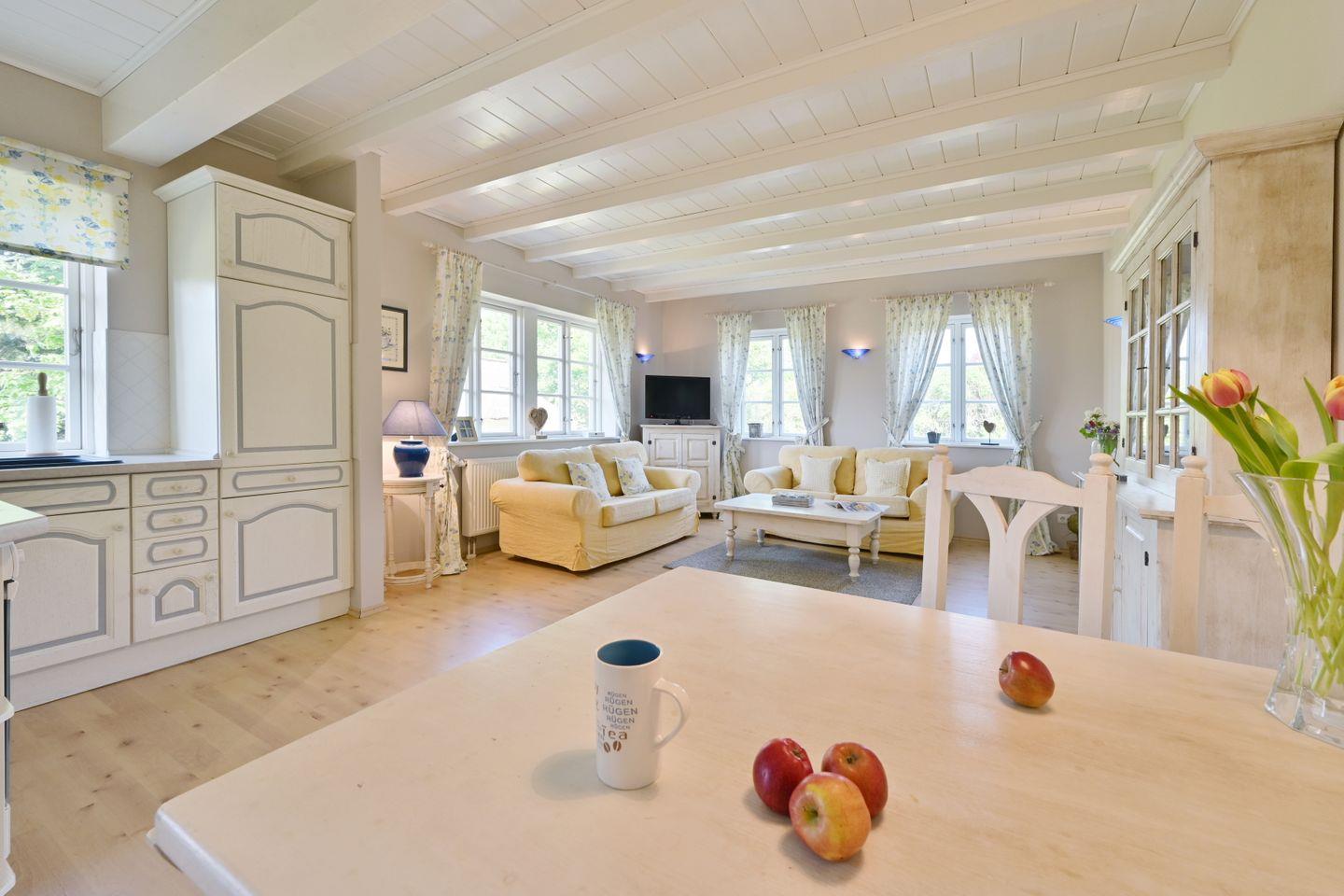 Die Ferienwohnung ist farblich aufeinander abgestimmt und mit viel Liebe zum Detail im Landhausstil eingerichtet.
