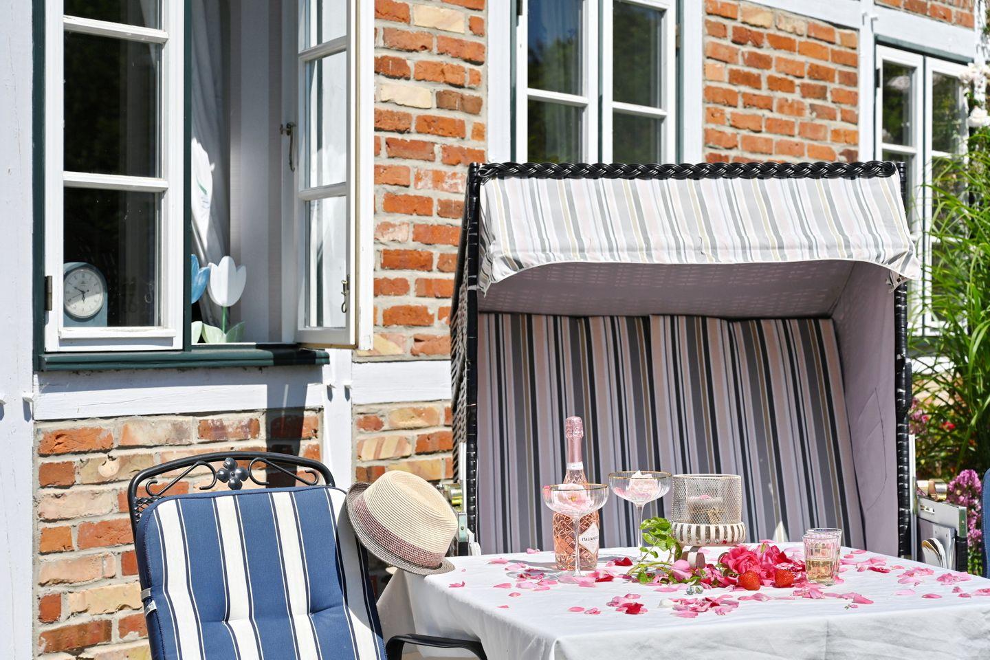 Zu jeder der Wohnungen gehört eine separate Terrasse in der wunderschönen großen Gartenanlage incl. Strandkorb und Gartenmöbeln. WLAN ist vorhanden.