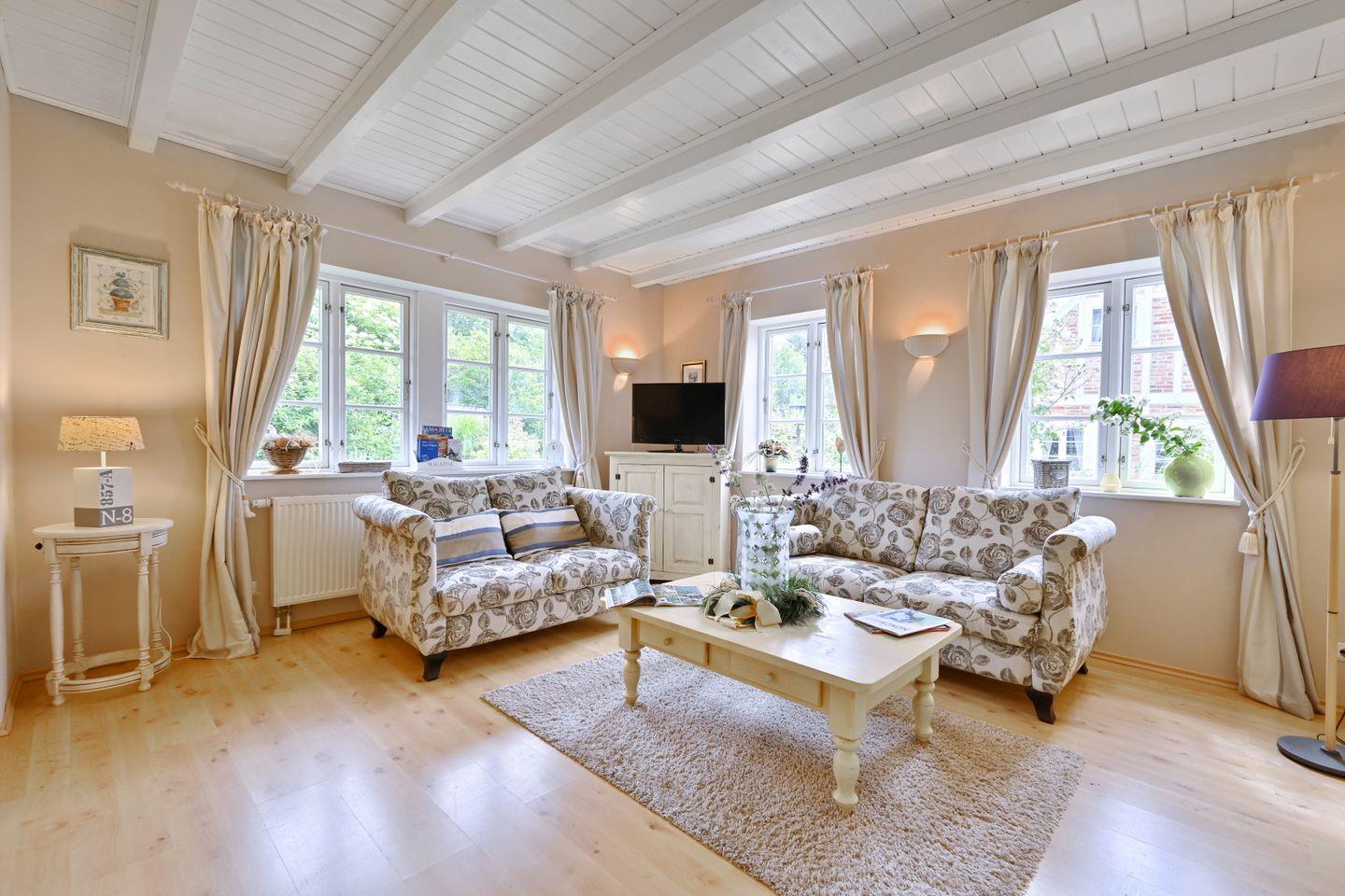 Die Ferienwohnung ist farblich aufeinander abgestimmt und mit viel Liebe zum Detail im Landhausstil eingerichtet.