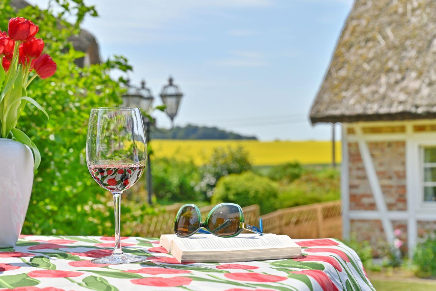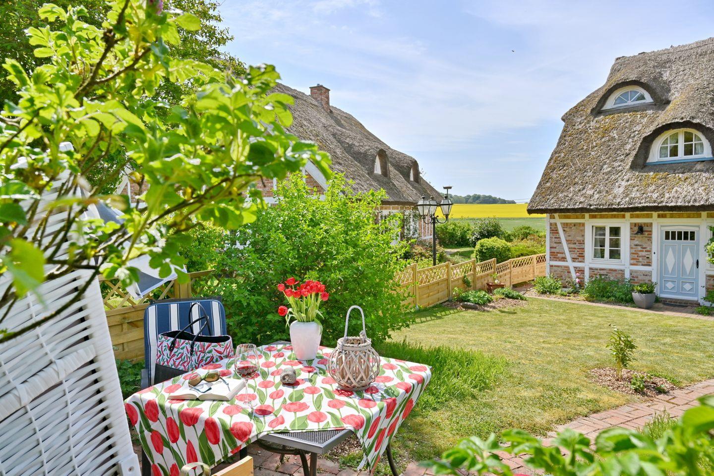 Romantische Ferienwohnung im Landhausstil mit Reetdach, Garten und privater Terrasse in ruhiger Lage bei Vilmnitz.
