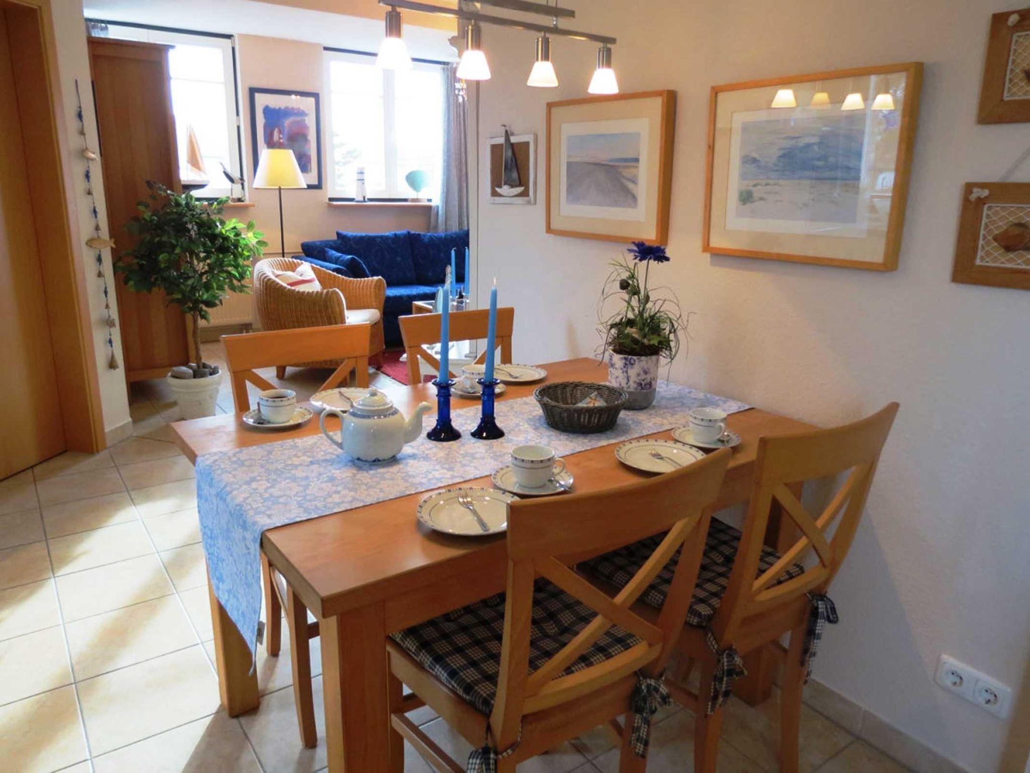 Für unsere kleinen Gäste halten wir kostenfrei ein Kinderbett und einen Hochstuhl bereit. Die Wohnung liegt nach Südwesten und hat eine Innenloggia mit Balkonmöbeln. Die Wohnung ist gefliest, im Schlafzimmer liegt Teppichboden. Zur Ortsmitte und zum Bäcker sind es ca. 500m. Ein großer Handwagen für Ihr Gepäck und Einkäufe gehört zur Wohnung. Die Wohnung ist eine Nichtraucherwohnung.