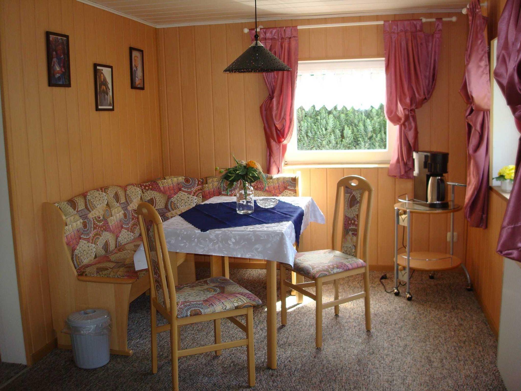 Die circa 40 qm große Ferienwohnung befindet sich Im Erdgeschoss und ist über einen separaten Eingang zu erreichen. Ausgestattet ist dieses mit einem kombinierten Wohn-/Schlafraum, inklusive einer Couch, Essecke, Sat-TV und einer kleinen Küchenzeile mit zwei Kochplatten, einem Kühlschrank und Wasserkocher und ein separates Schlafzimmer mit einem Doppelbett. Ebenfalls vorhanden ist ein Bad mit Dusche und WC. Im Garten stehen Ihnen Sitzgelegenheiten zur Verfügung.