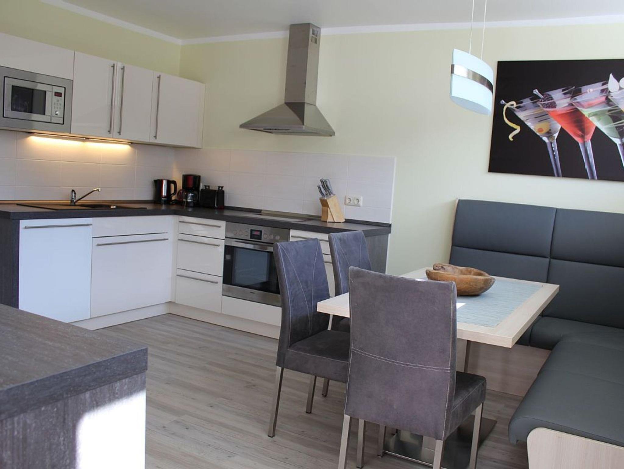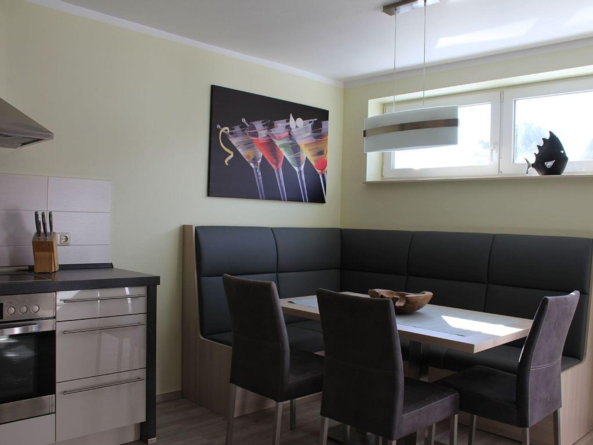 Die Ferienwohnung Süderende auf der Insel Hiddensee bietet neben den 3 separaten Schlafzimmern eine große Küche mit Eckbankgruppe und Nolte Einbauküche. (Geschirrspüler, Backofen, Induktionsherd) sowie ein Wohnzimmer ist mit einer Eckcouch, Sessel und LED- TV.