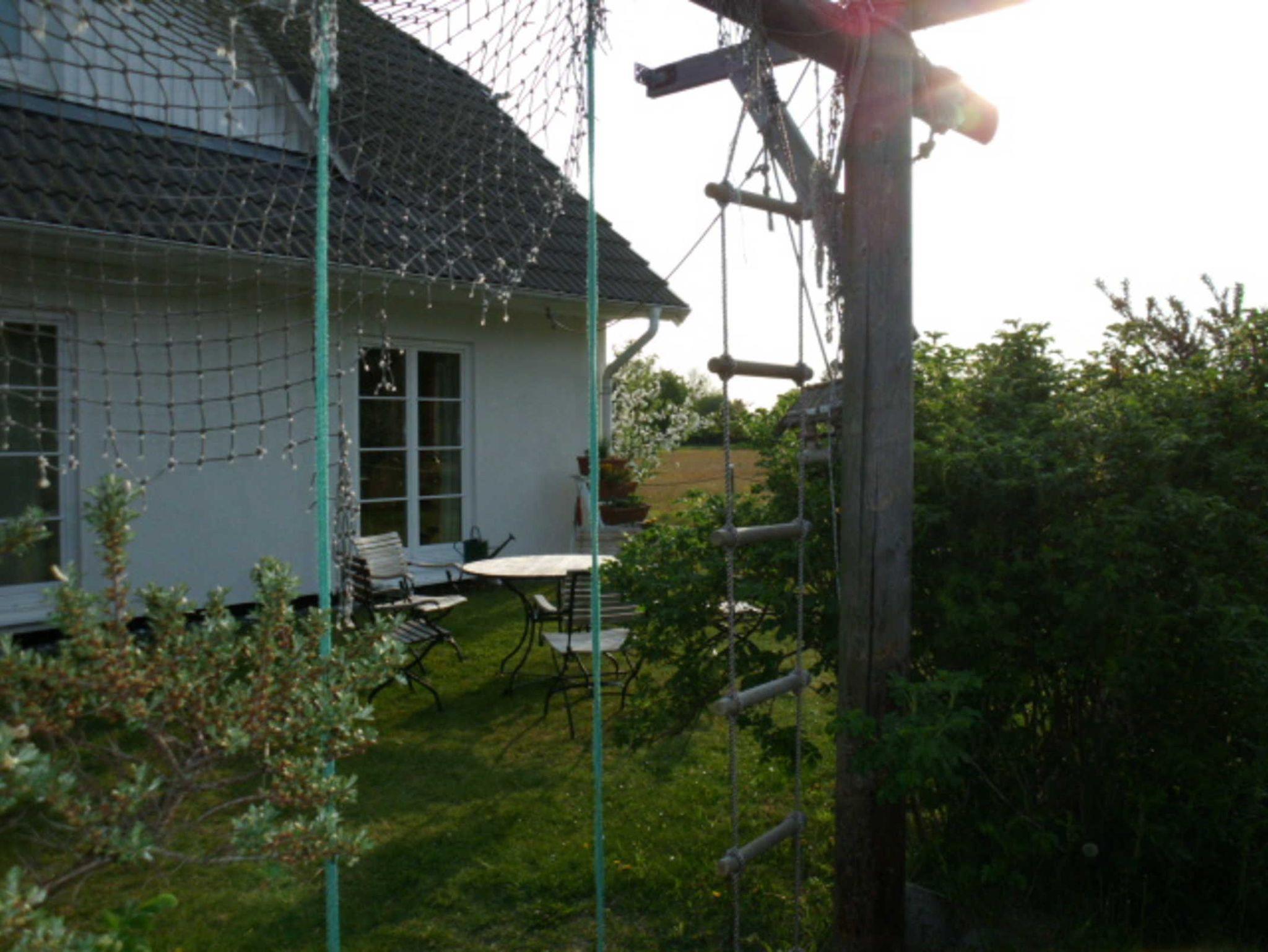 Für das Frühstück im Freien, bei entsprechenden Temperaturen, können auf der Wiese vor dem Haus stehende Gartenmöbel genutzt werden