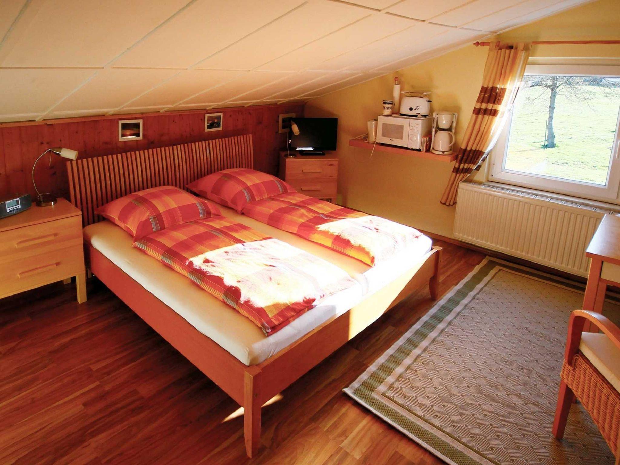 Komfortabler Wohn- und Schlafraum inkl. Radio, Sat TV, Dusche im Nebengebäude, Kaffeemaschine, Toaster, Wasserkocher, Bettwäsche, Handtücher, Kühlschrank und WC auf der Etage.